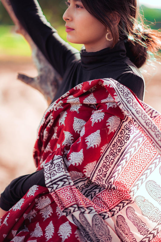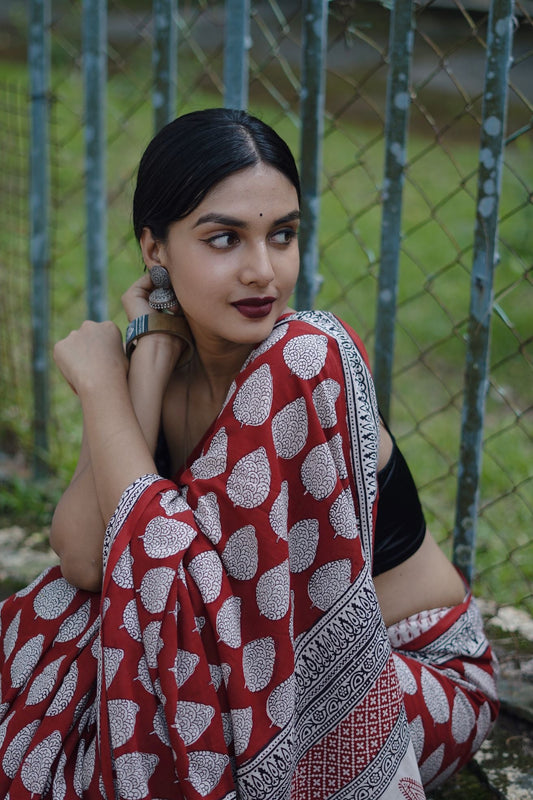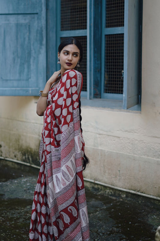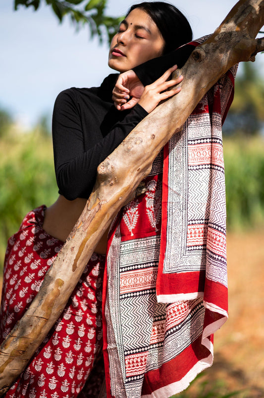 Natural dyed Dabu sarees - Malhar -Red Dabu saree