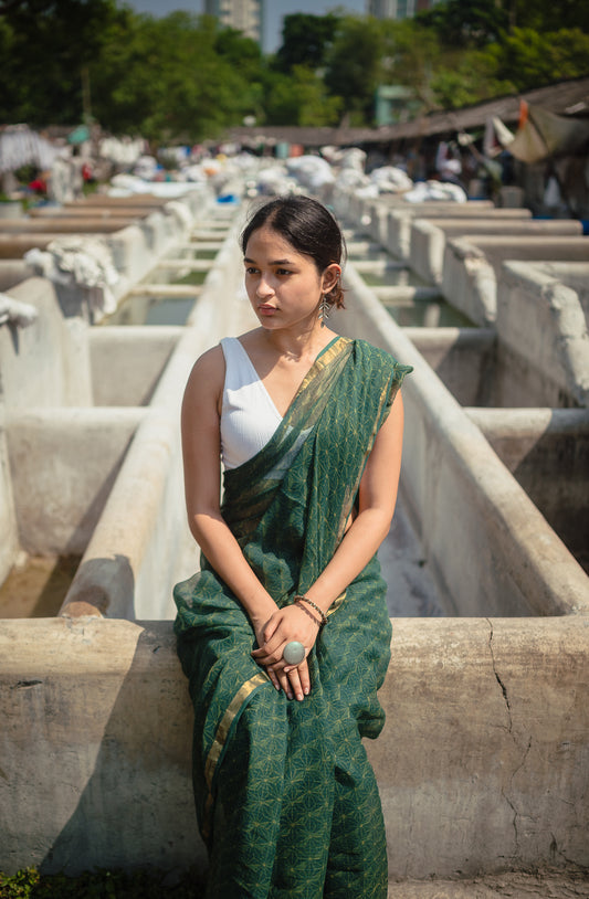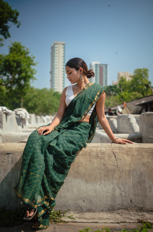 Natural dyed Dabu sarees - Malhar - Parineeta