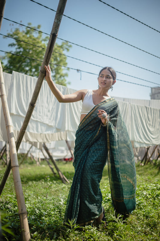 Natural dyed Dabu sarees - Malhar - Nirjala