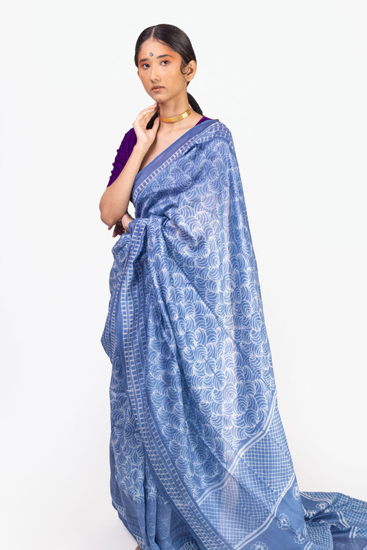 Natural dyed Dabu sarees - Malhar -Pharad Leaf Indigo