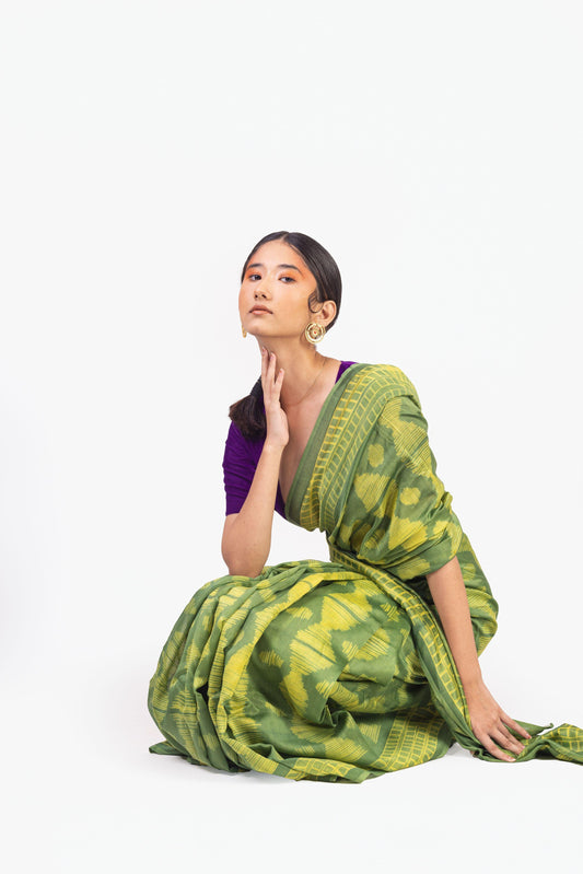 Natural dyed green Dabu sarees - Malhar - Kesula
