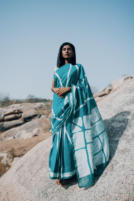 The art of Tie and Dye - Zahra - blue Batik saree