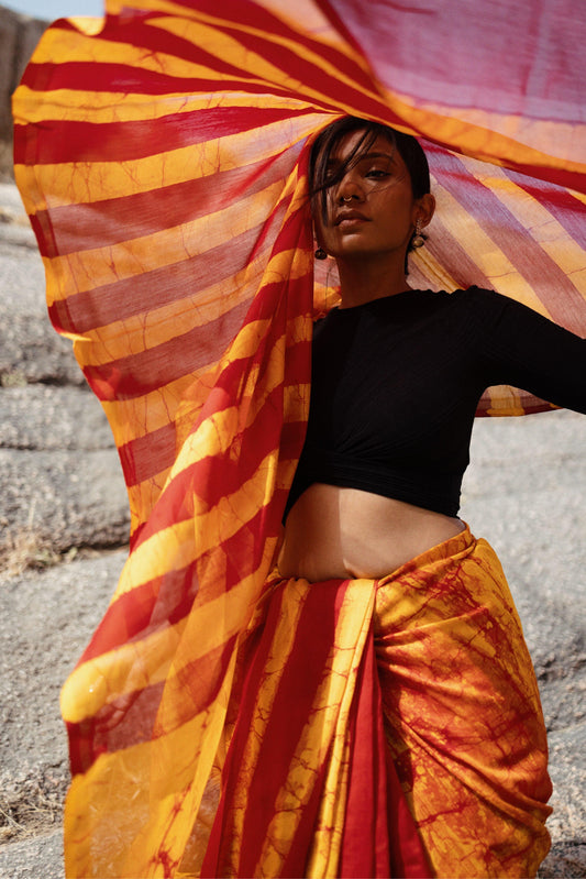 The art of Tie and Dye - Zahra - Orange Batik saree