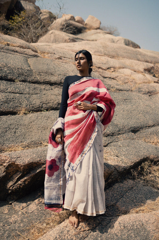 Zahra Batik dye white pink Silk cotton Saree