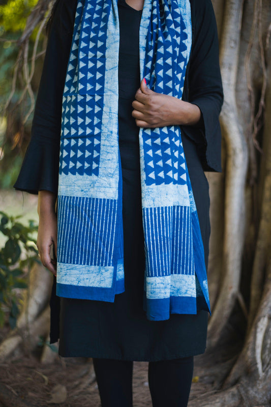 Kaisori Indigo Ajrakh Mul Stole- Prism pattern