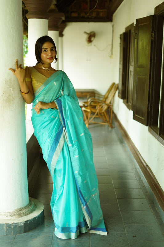 Utsav light Blue silk cotton silver Zari Chanderi Saree