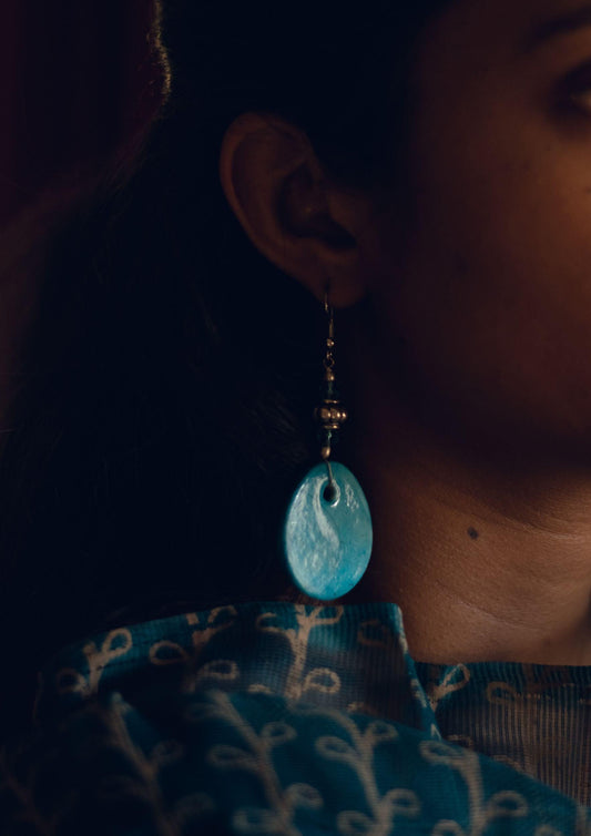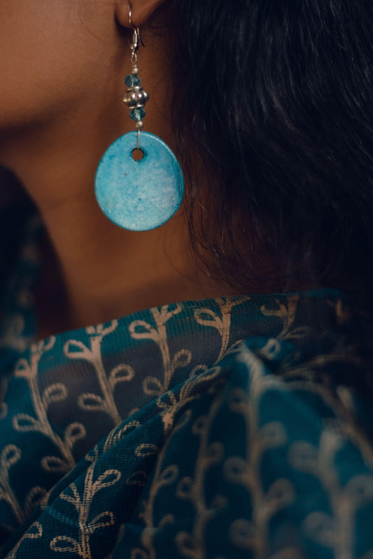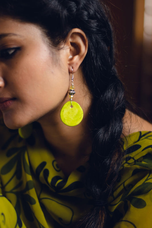 Kaisori blue pottery jewellery - Yellow circle earrings