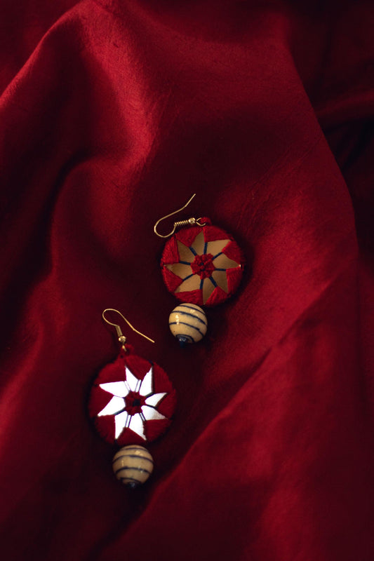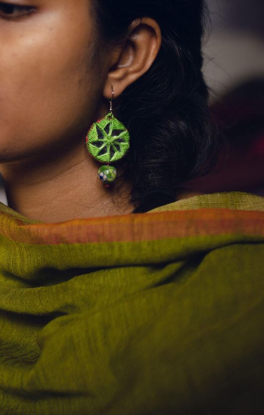 Kaisori Dual circle thread pottery earrings - Pink and Green