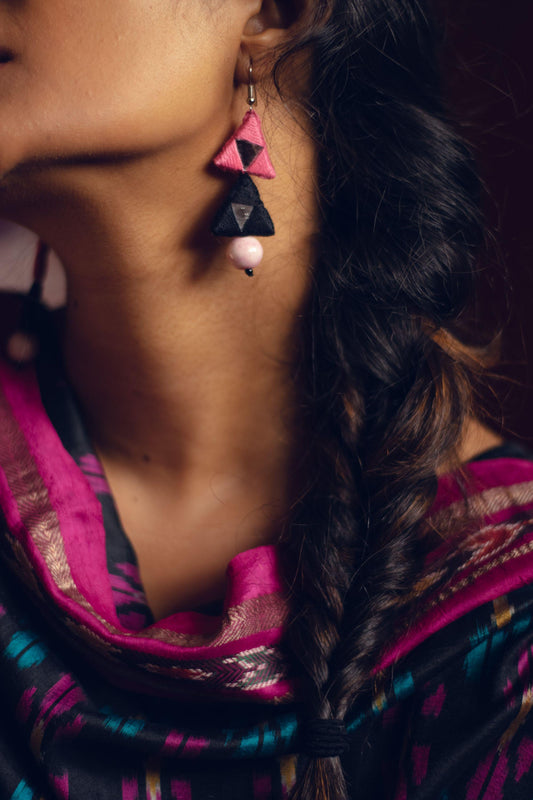 Kaisori blue pottery jewellery - Triad thread earrings - pink and white