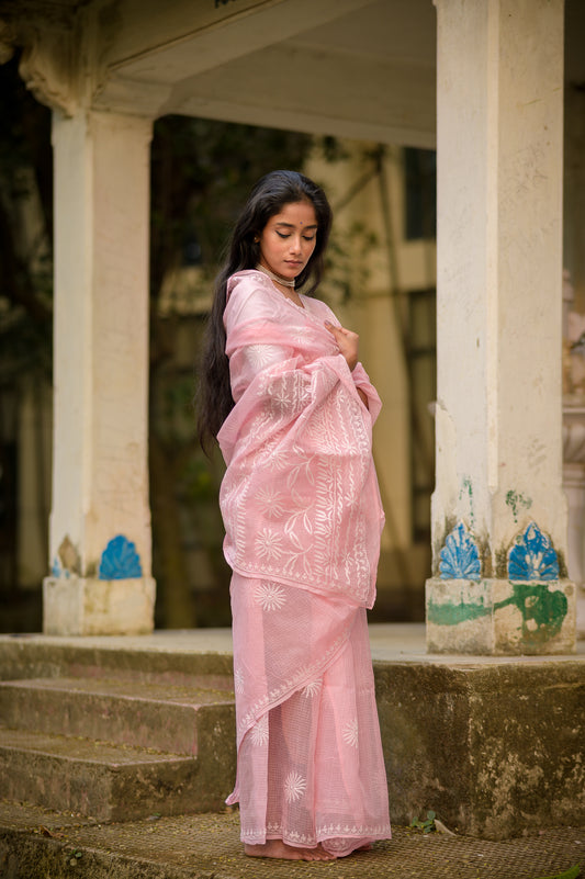 Introducing Meher, Kaisori’s exquisite Chikankari Kota saree collection—a celebration of timeless elegance and delicate craftsmanship. Named after the grace and beauty it embodies, Meher showcases the rich heritage of Lucknow’s Chikankari embroidery, paired with the lightweight charm of Kota Doria fabric.