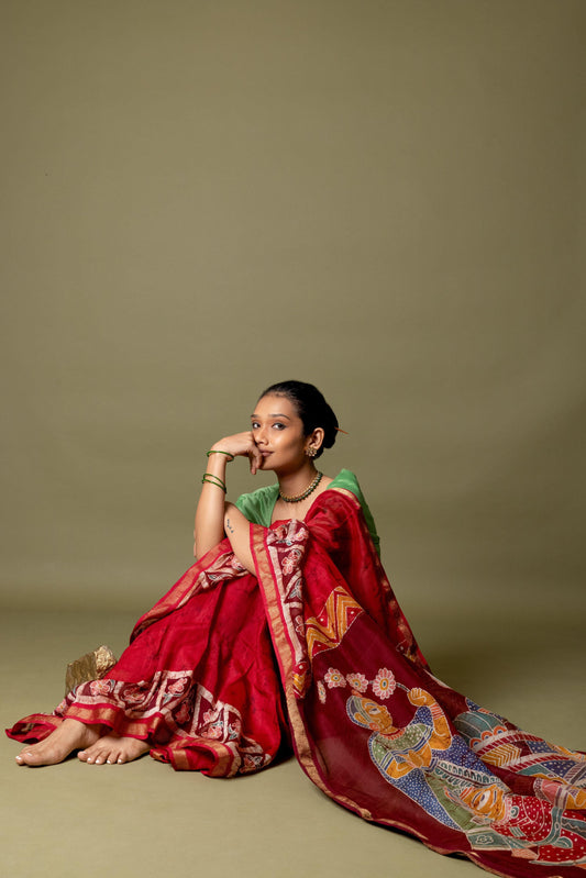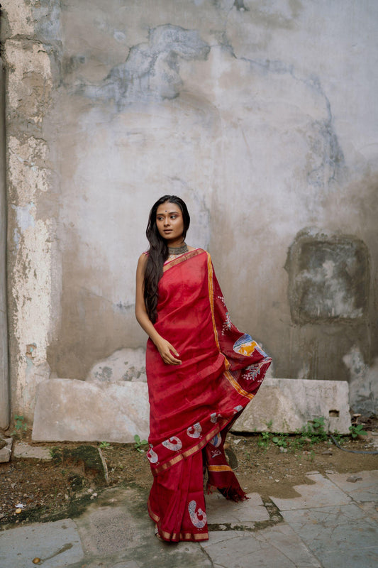 Batik Maheswari saree - Narmada- Ragini in the forest