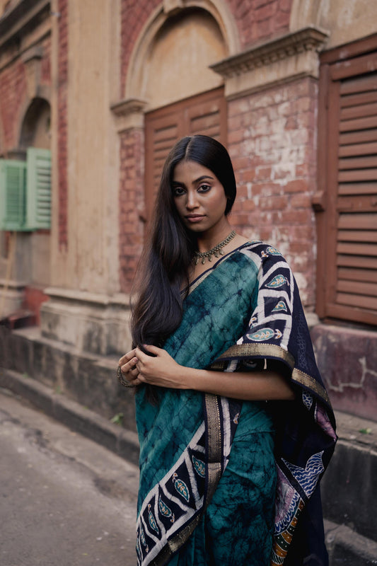 Batik Maheswari saree - Narmada- Ragini Bagh