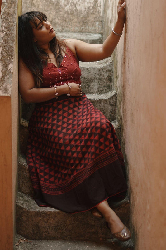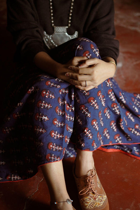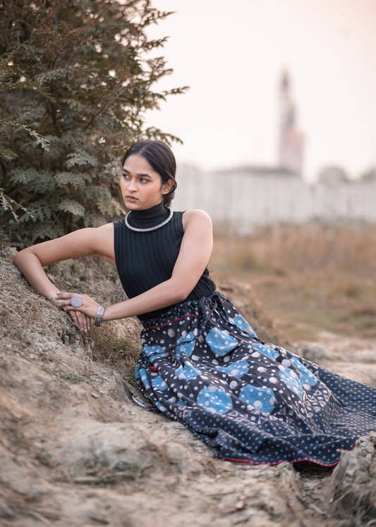 Printed Dabu indigo Dskirt - Noor - Jaal