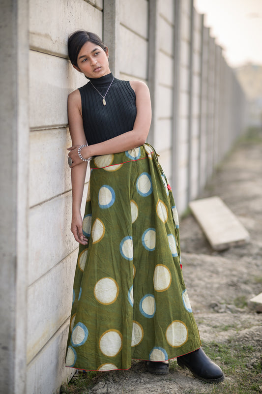 Natural dyed cotton long light green skirt -Noor - Ahira