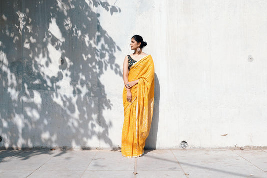 Celebrating Bengal craft traditions - Sitara- Mustard zari cotton saree