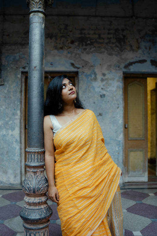 Weaves of Bengal - Sitara - Yellow zari cotton saree