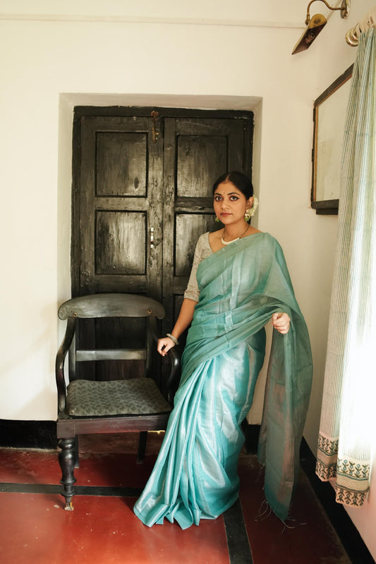Weaves of Bengal - Sitara - Shramila light blue tissue saree