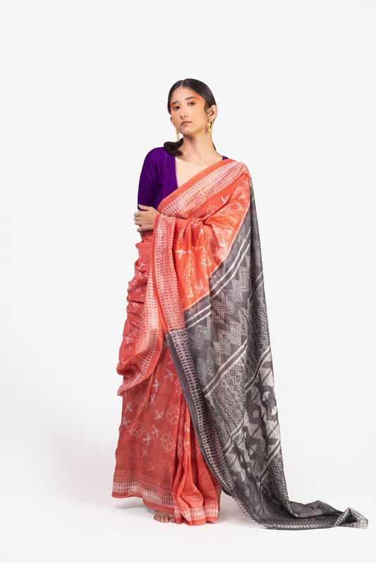 The art of Tie and Dye - Zahra - Orange Batik saree