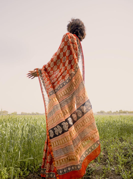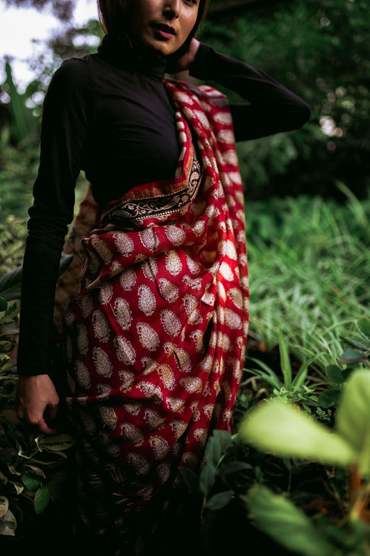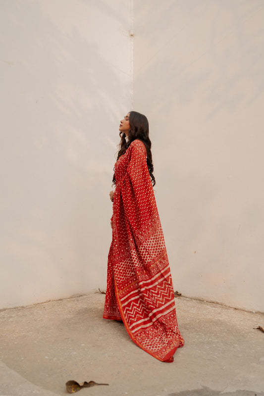 Natural dyed Dabu sarees - Malhar -Red Dabu saree