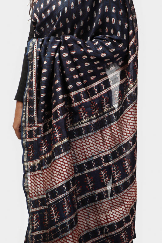 Natural dyed Bagru saree - Roheda- Kairi Syahi Begar