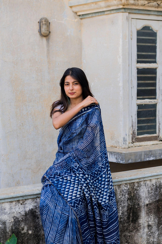 Natural dyed Dabu sarees - Malhar -Indigo Dabu saree