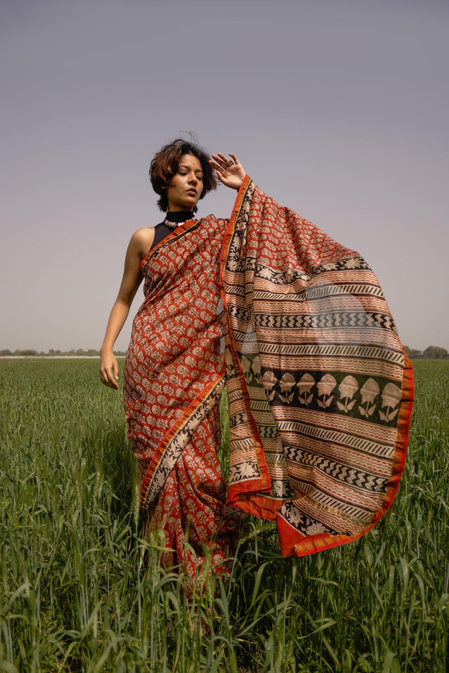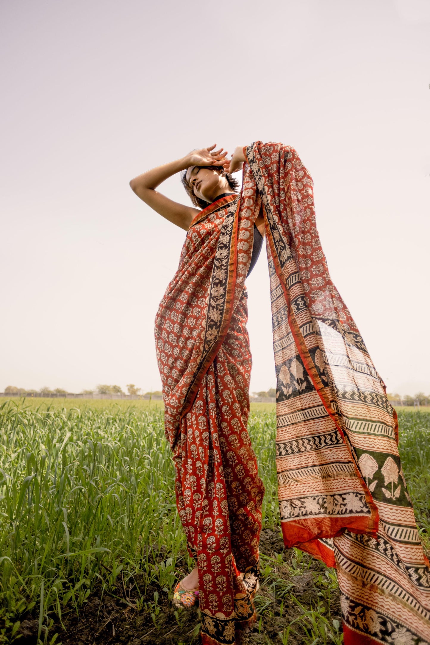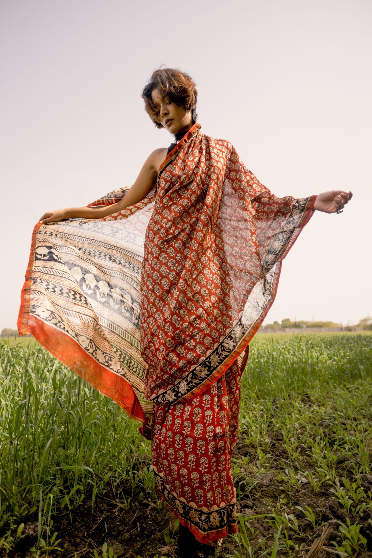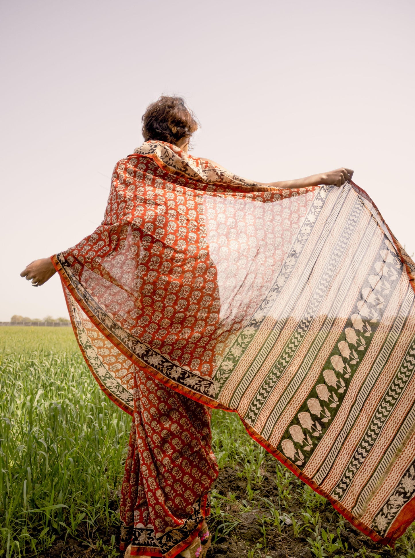 - Fabric: Handloom silk cotton, block-printed with natural vegetable dyes.
