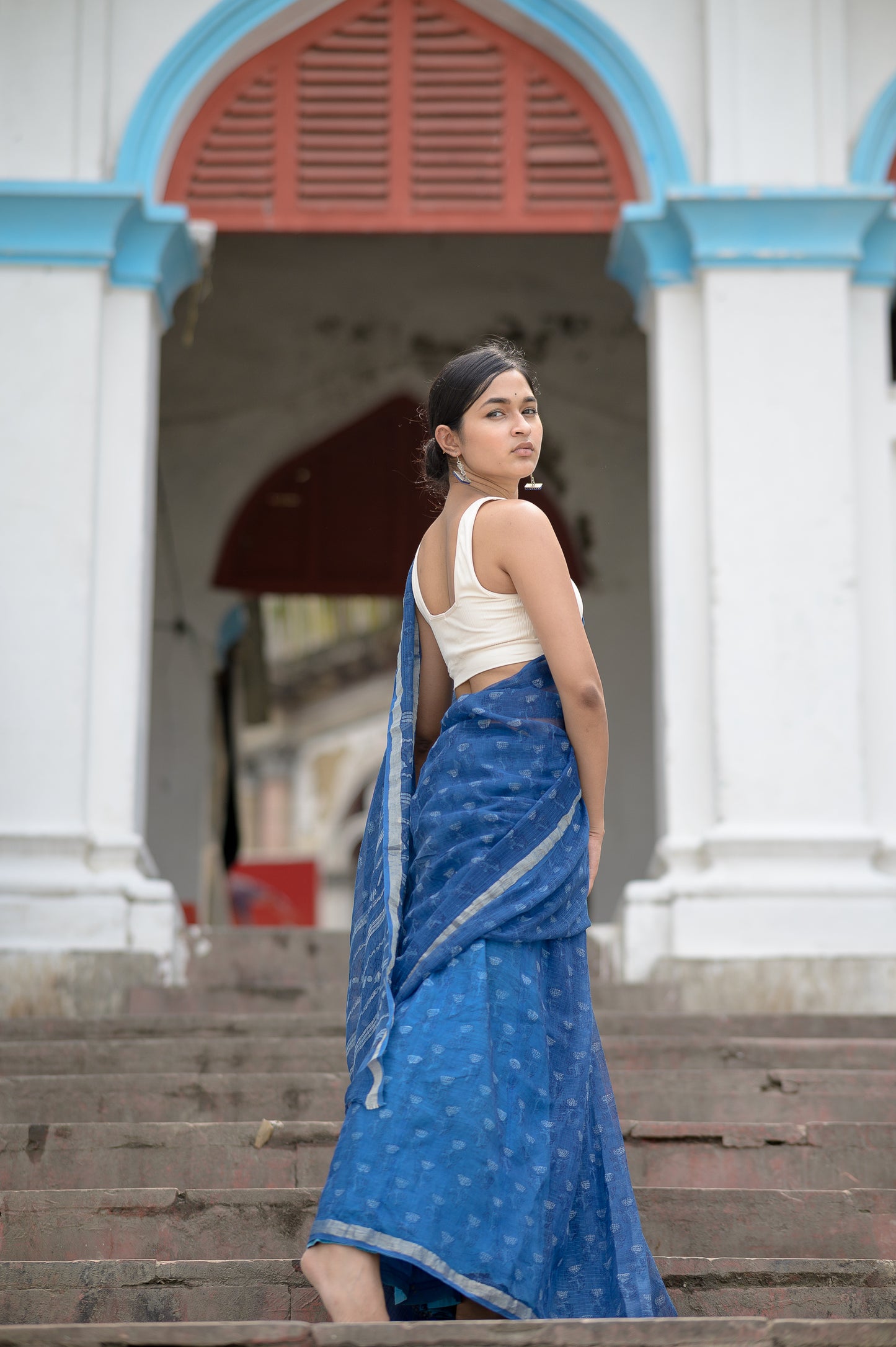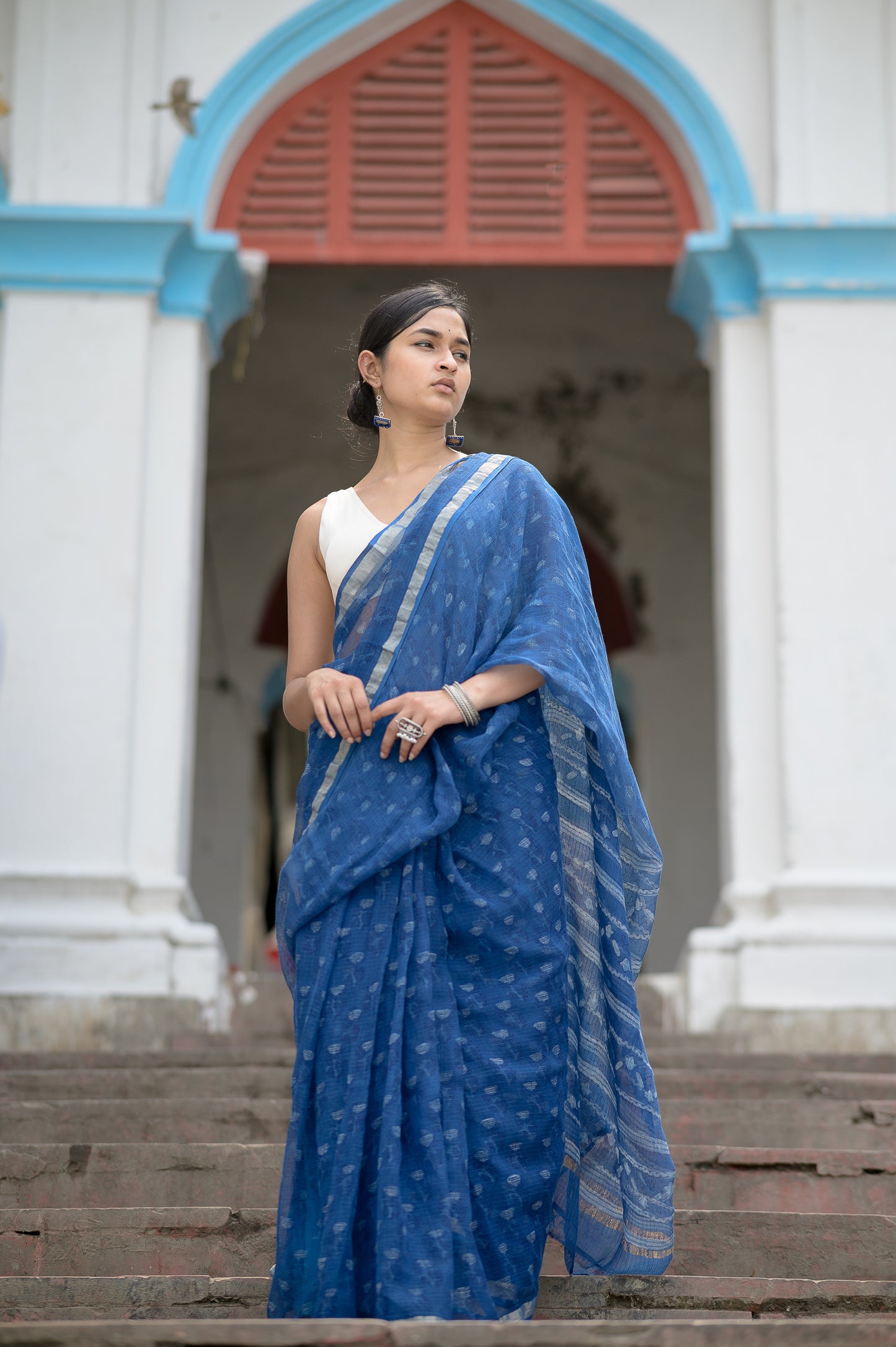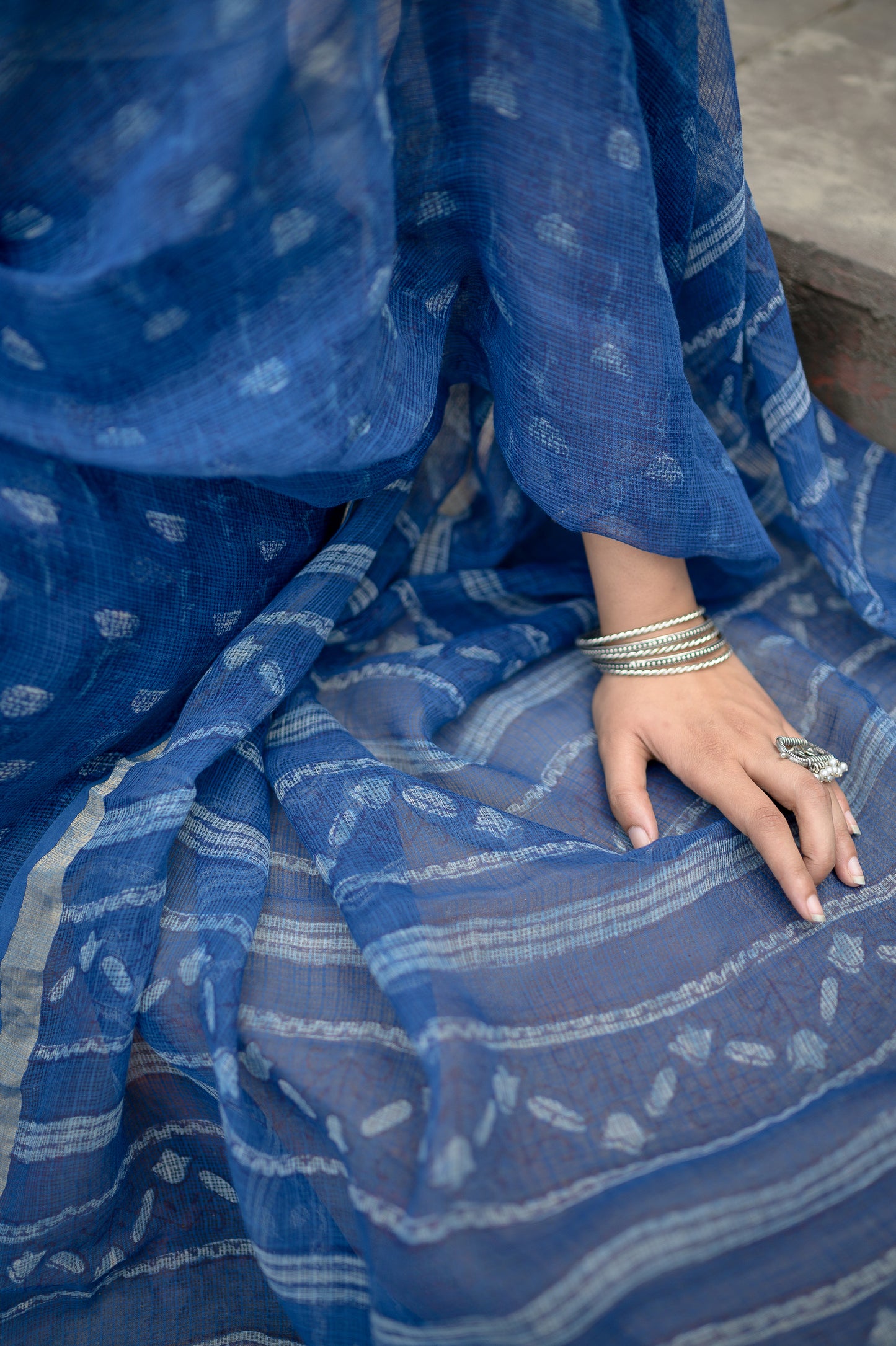 Natural dyed Dabu sarees - Malhar -Pharad Leaf Indigo