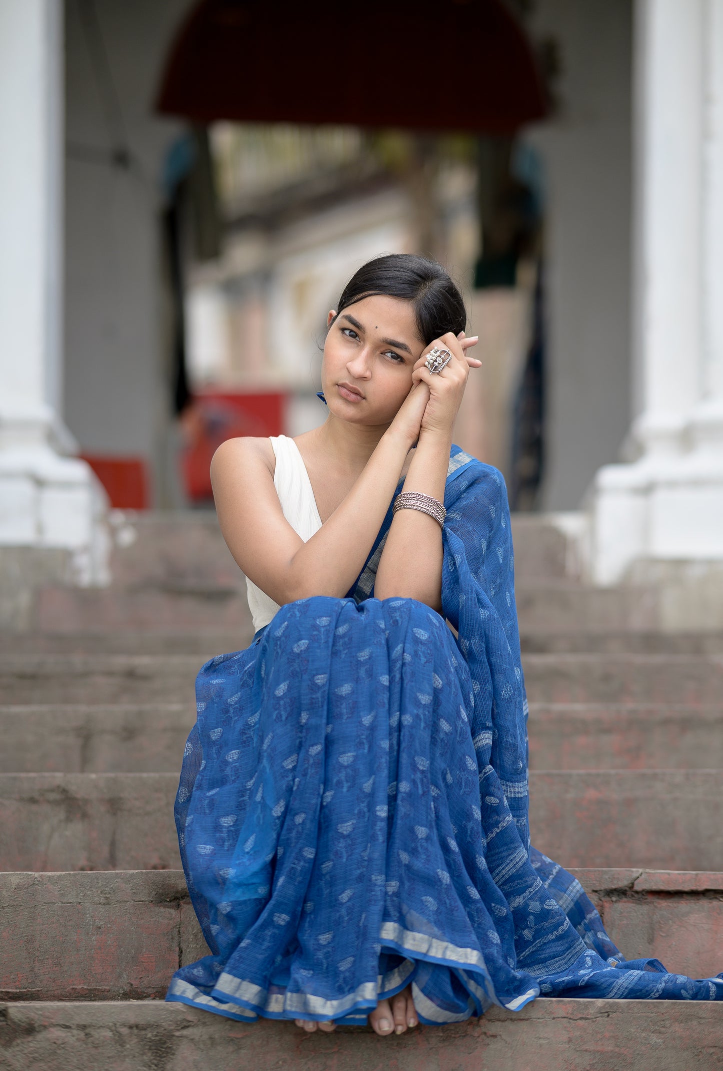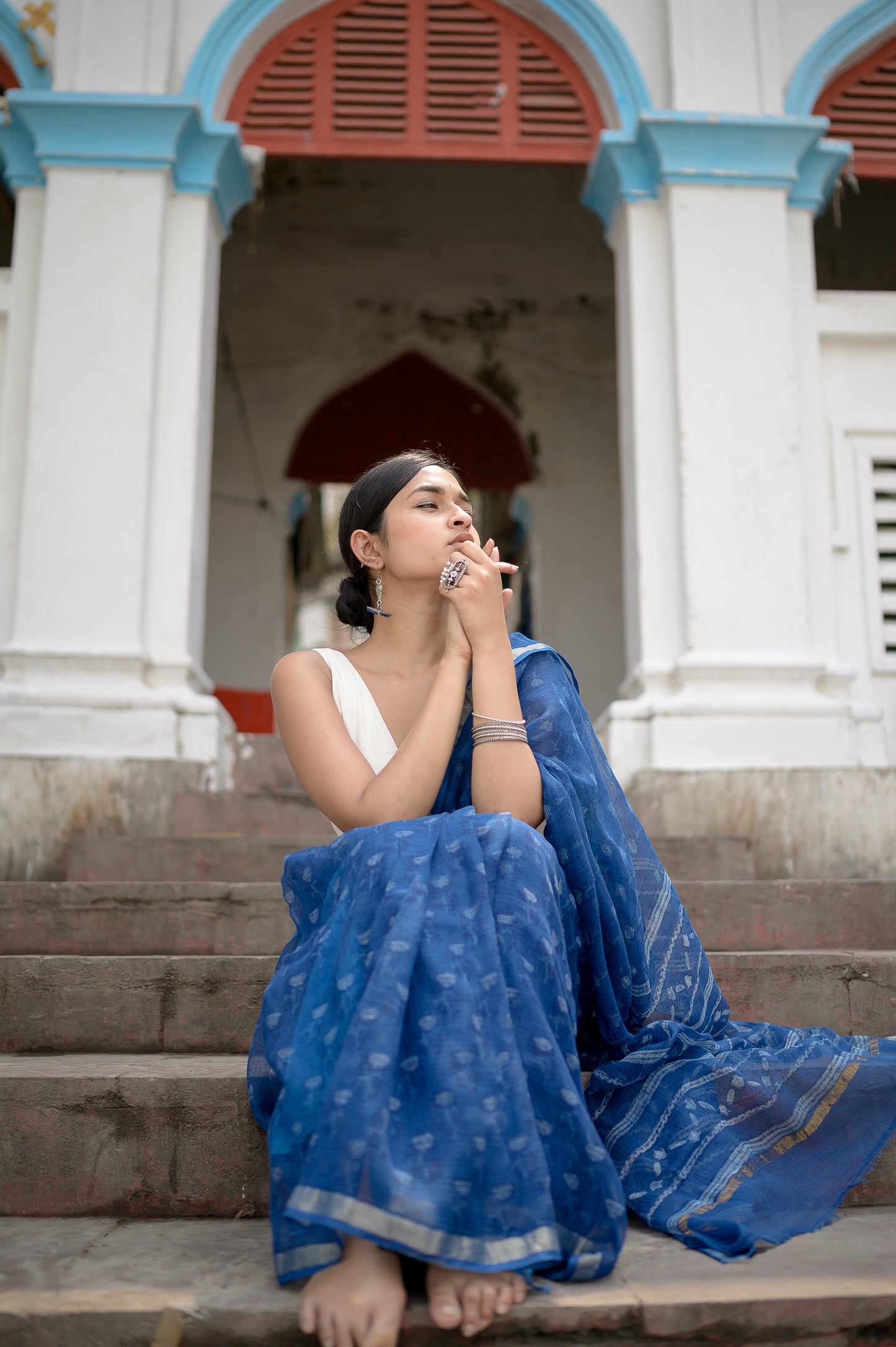 Our Kota range is truly one of a kind. Like the summer breeze on an ethereal lake, it is woven by the karigars of Kaithoon and interlaced with Dabu block printing on the borders and body to craft this chic new drape story.