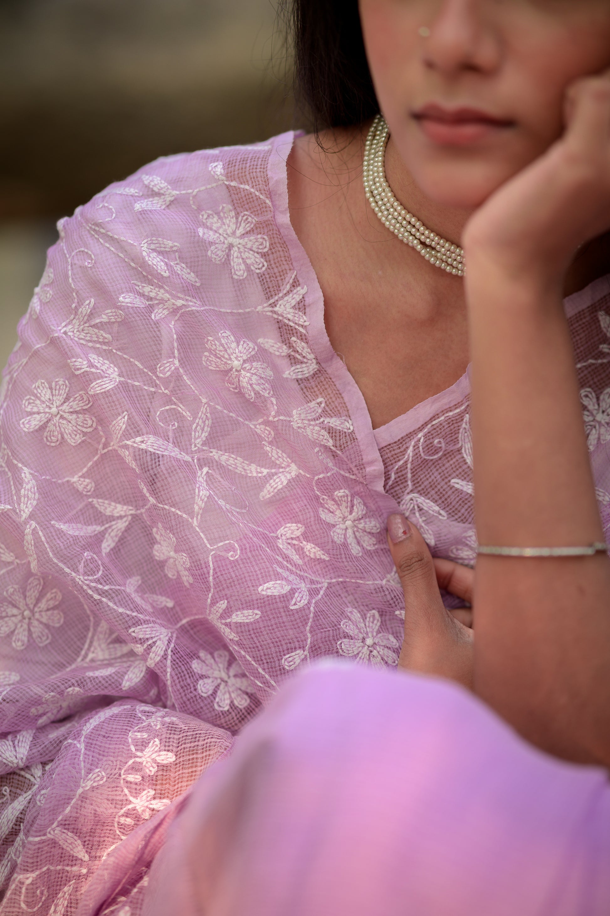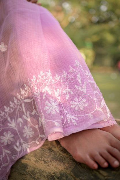 Fabric: Soft Kota saree, hand- embroidered with Chikakari in azo-free dyes.