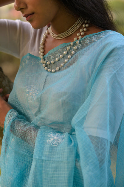Fabric: Soft Kota saree, hand- embroidered with Chikakari in azo-free dyes.