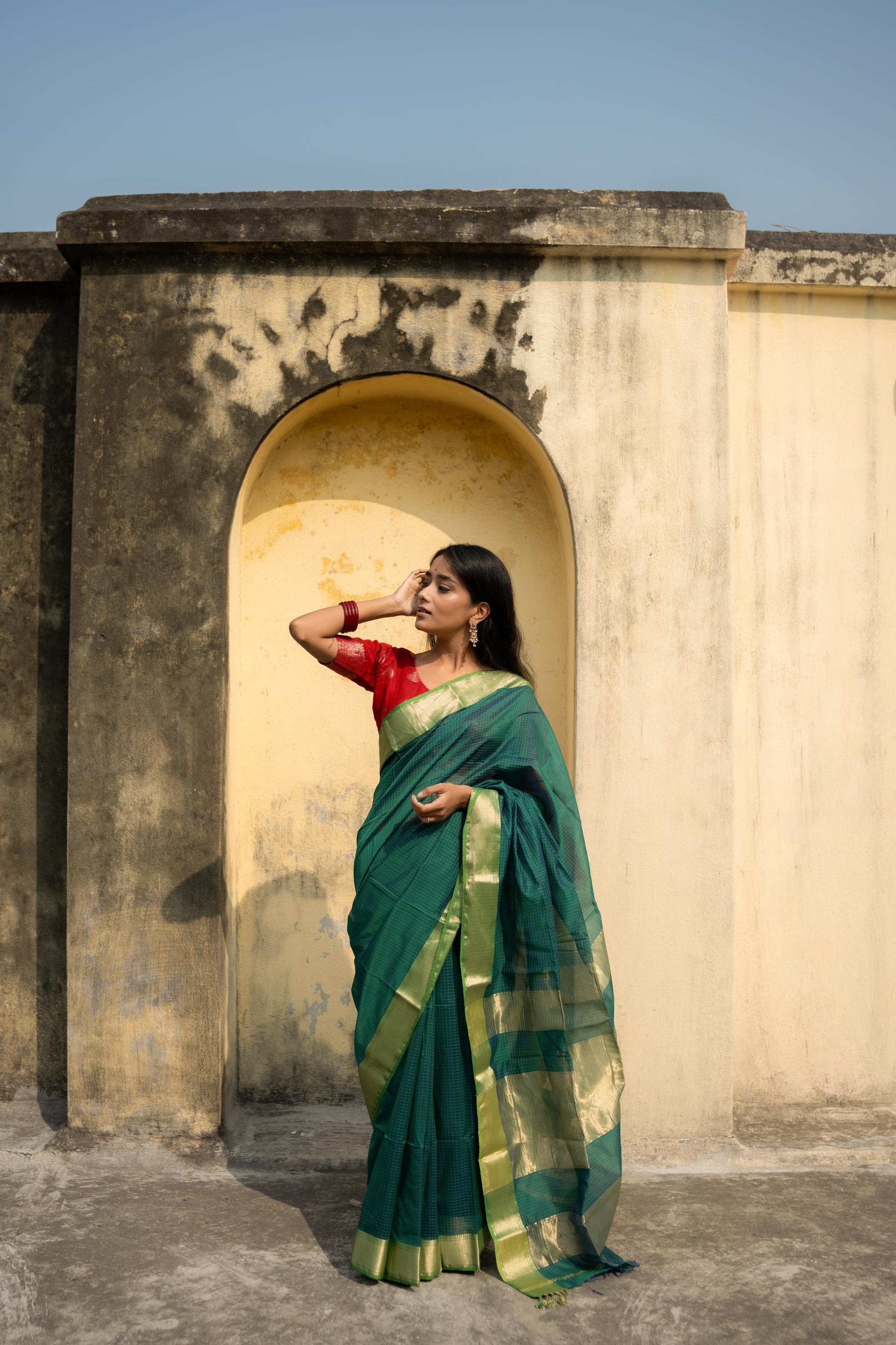 Kaisori’s range of Silk Cotton Maheswari sarees is meticulously handcrafted with woven zari borders by skilled artisans, creating the perfect ethnic ensemble to match any look.