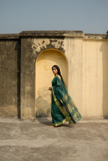 Fabric: Handwoven and hand-spun Cotton Silk with woven zari borders.