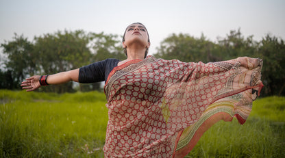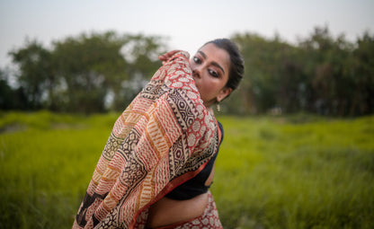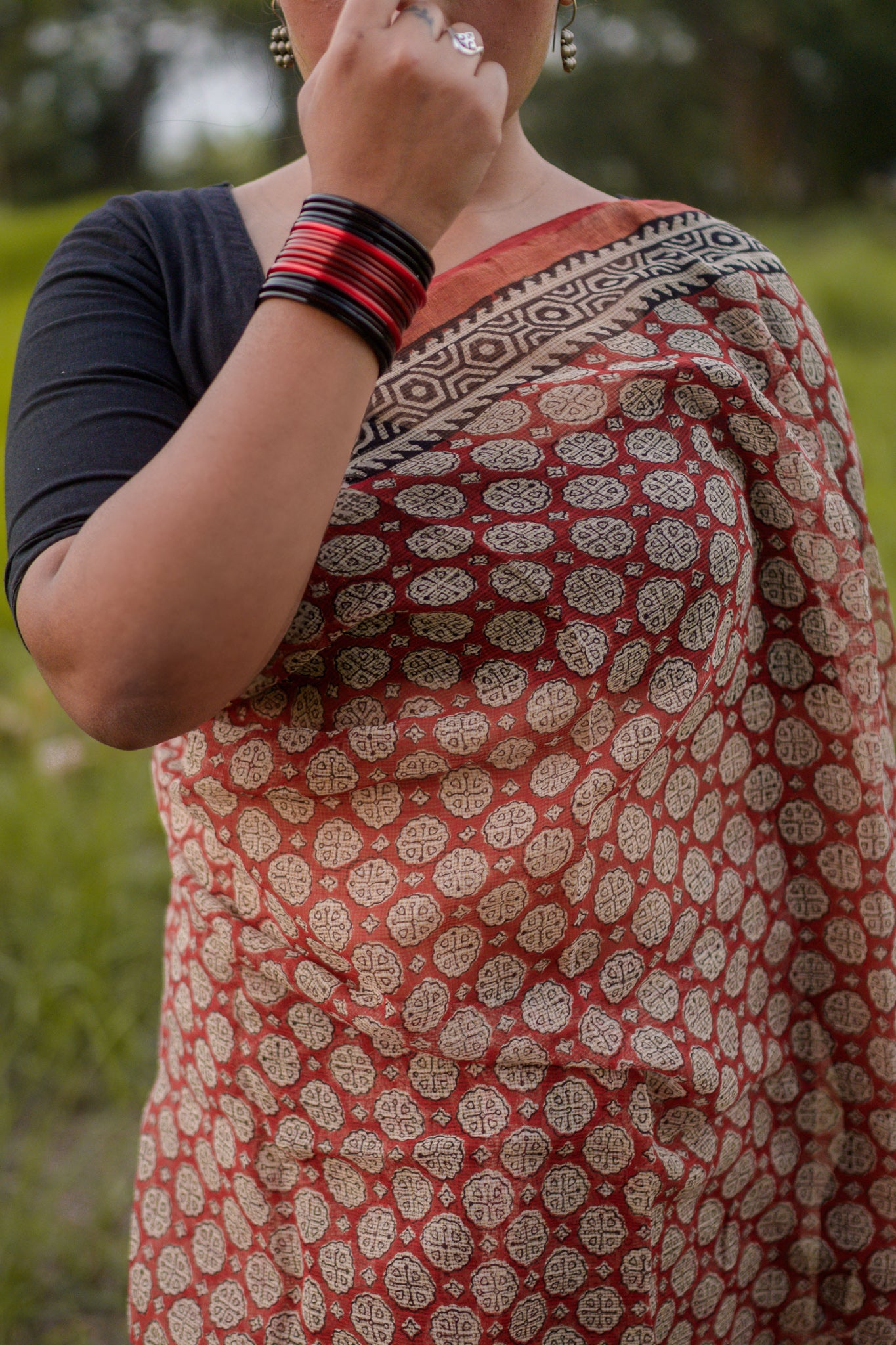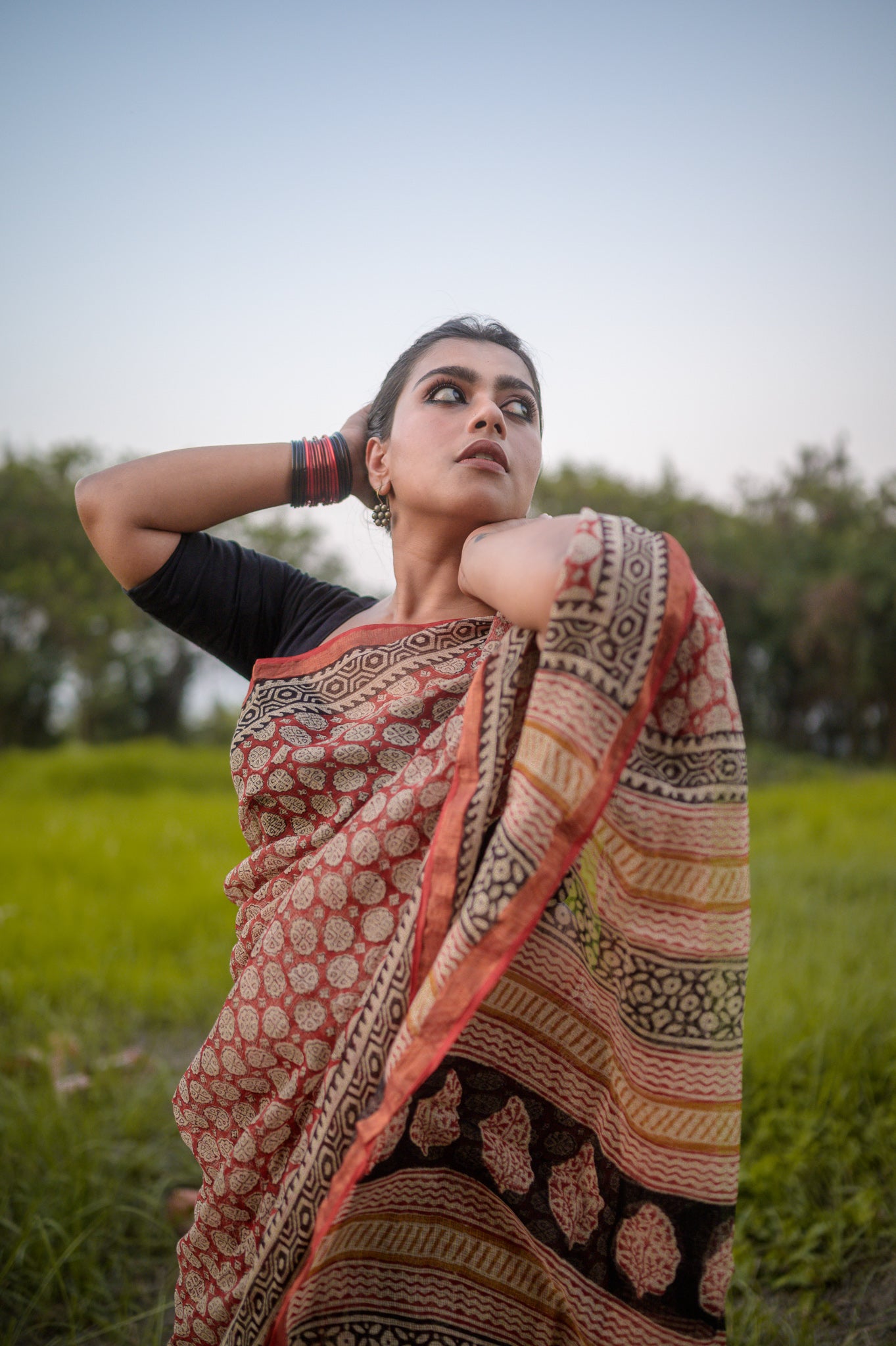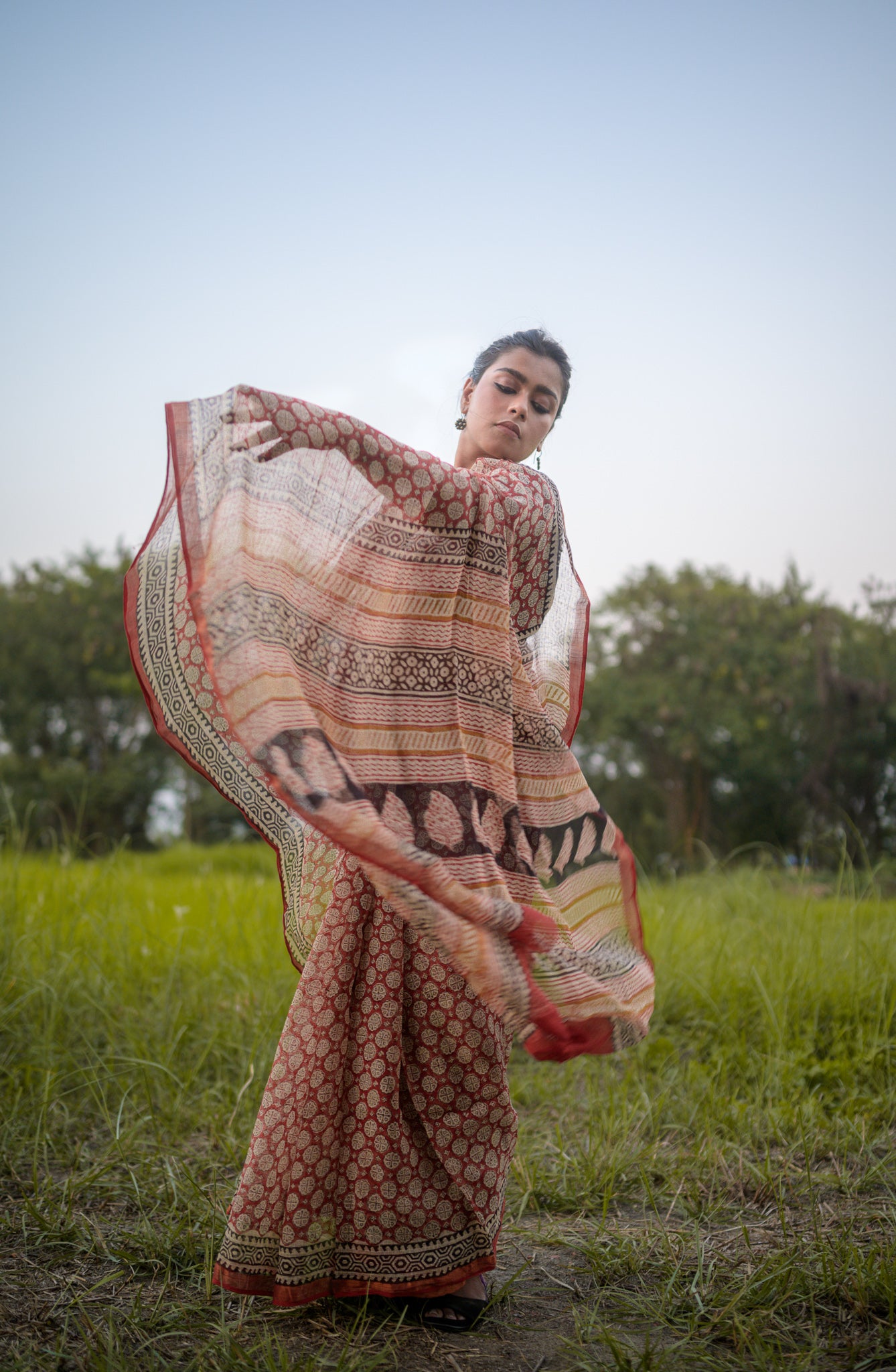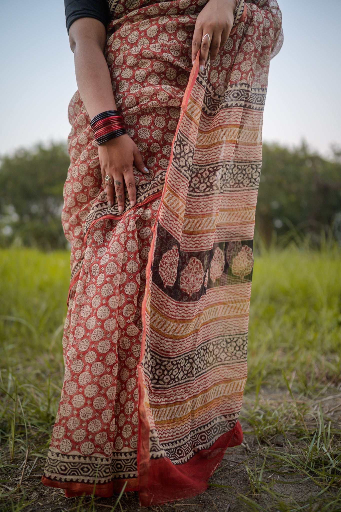 Natural dyed Bagru saree - Roheda Kota Kamal handblock printed saree