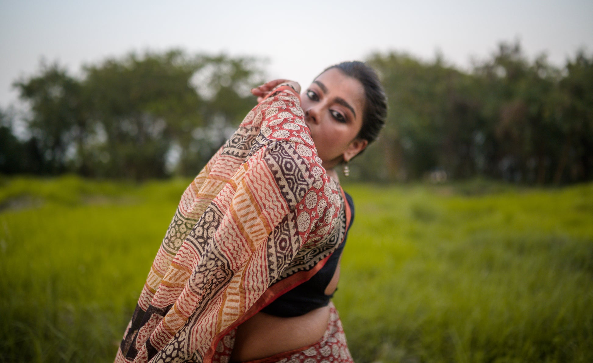Every saree, stole, and dupatta in the Roheda range is a canvas of natural dyes and hand-carved patterns, reflecting the rhythm of the desert and the artistry of its people.