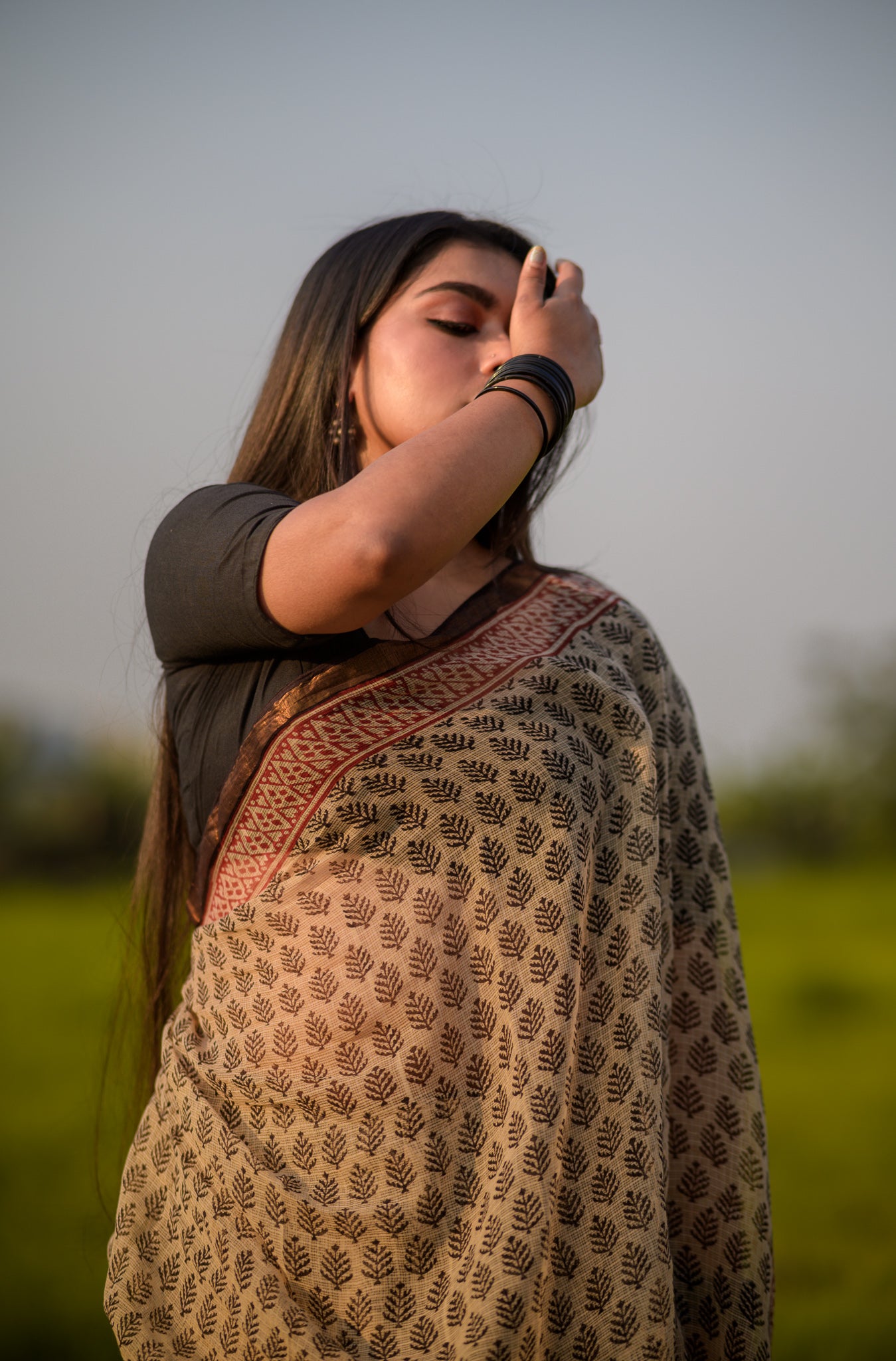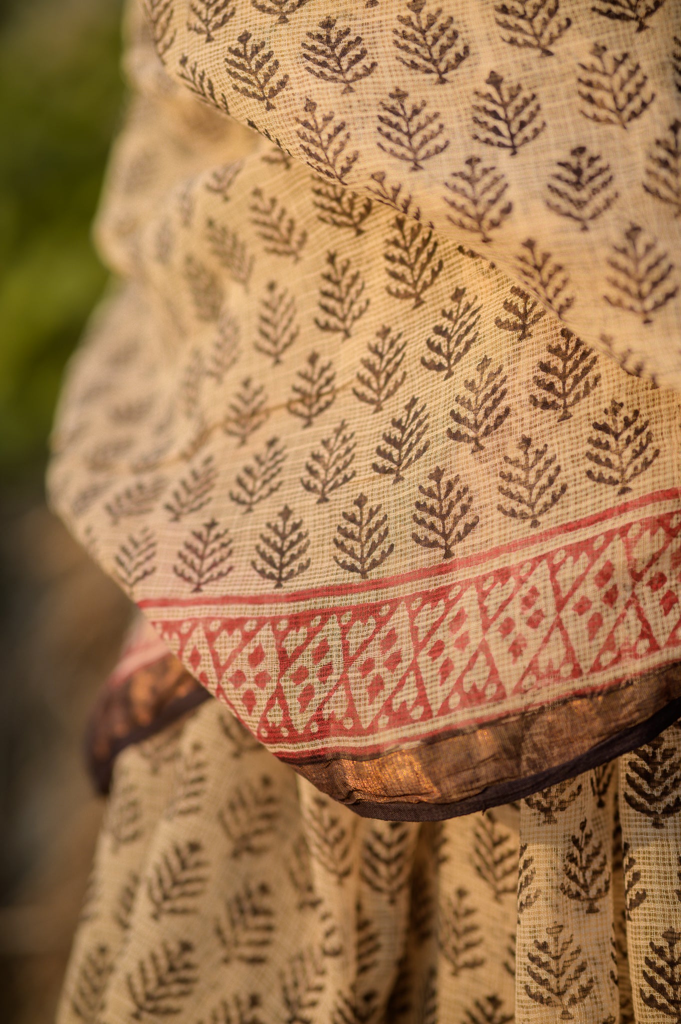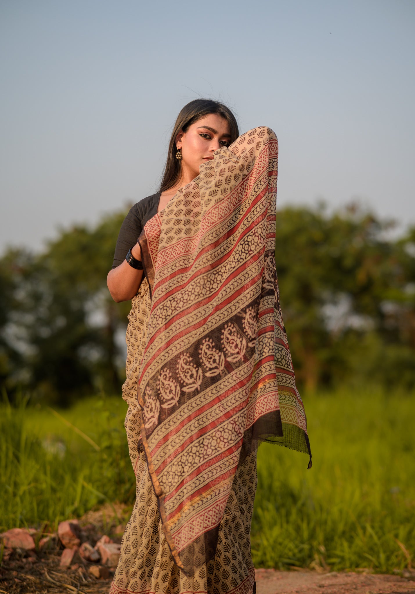 Natural dyed Bagru saree - Roheda Kota Mohini handblock printed saree