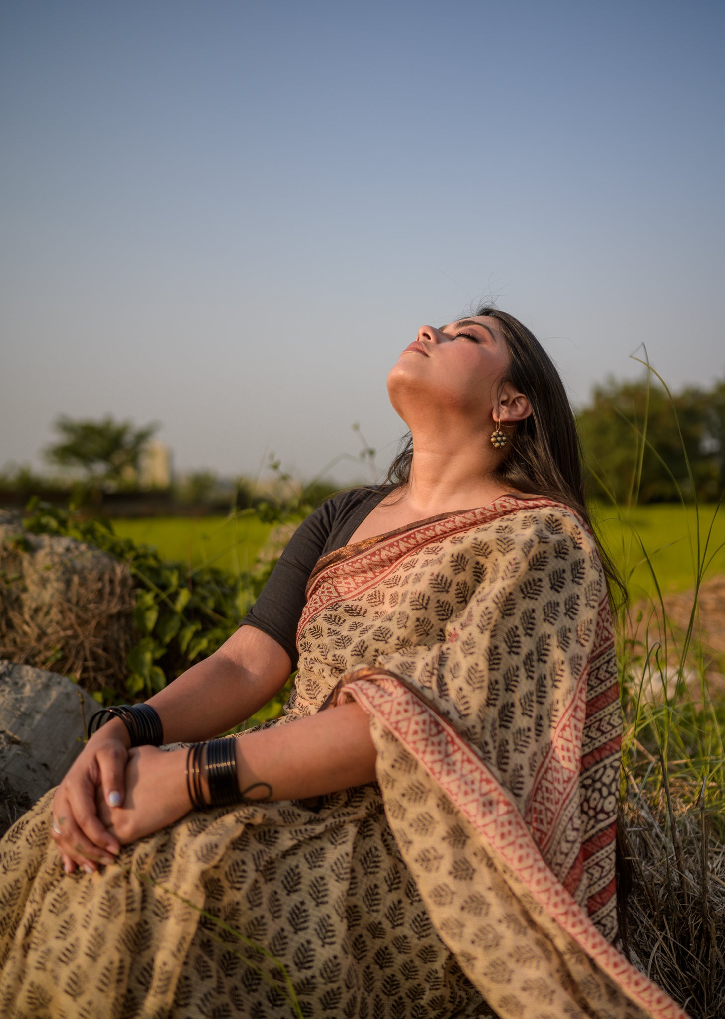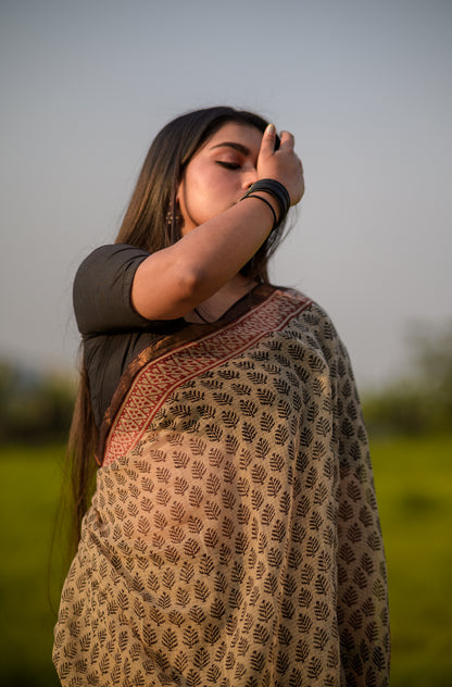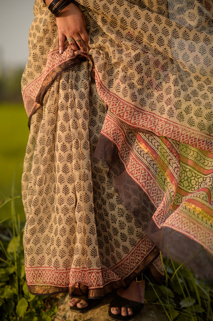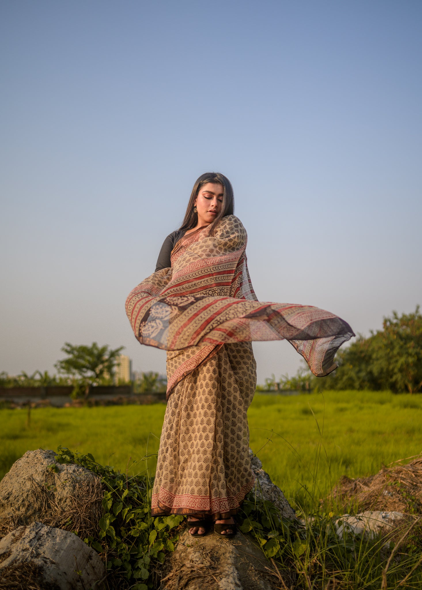 Natural dyed Bagru saree - Roheda Kota Mohini handblock printed saree