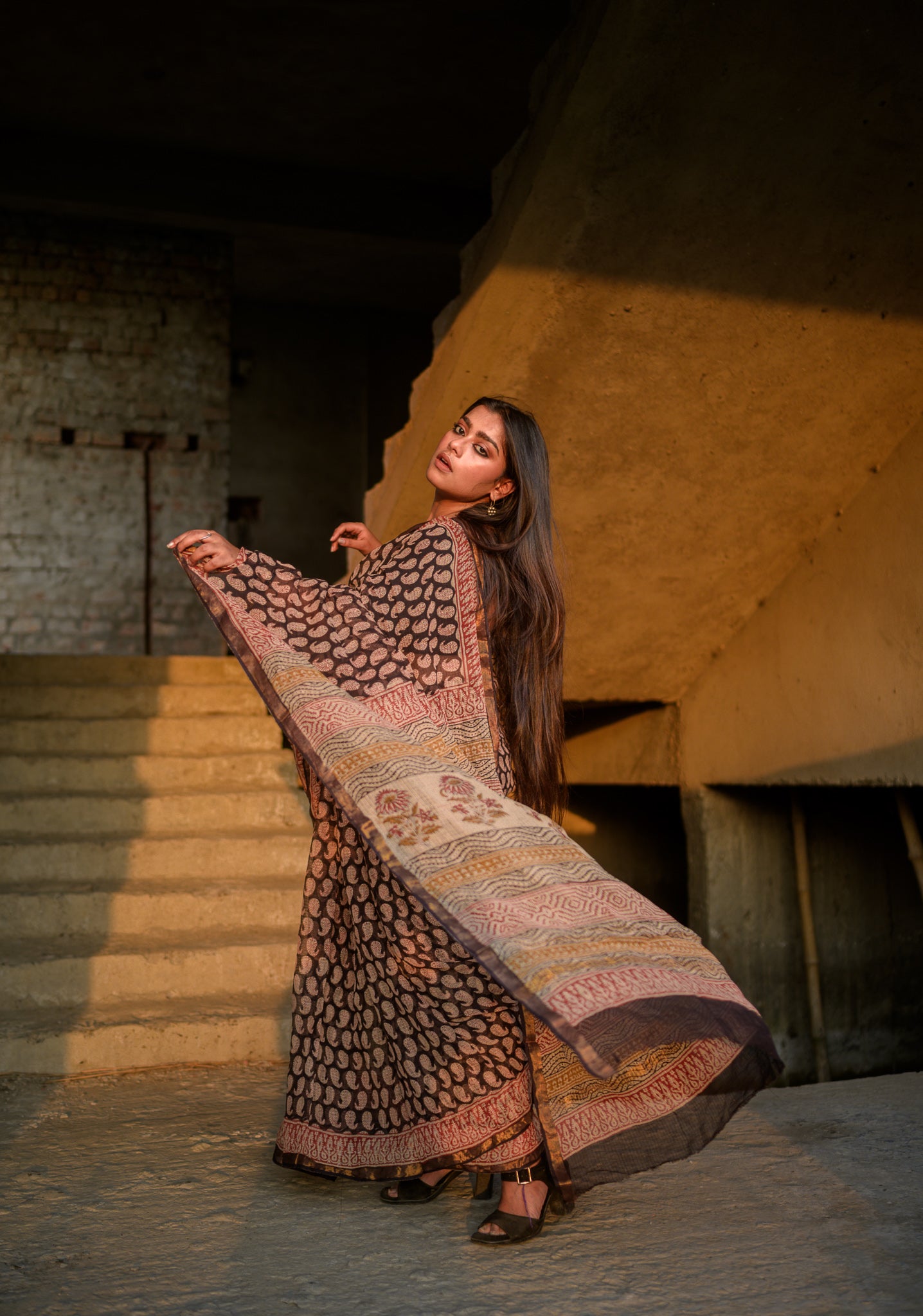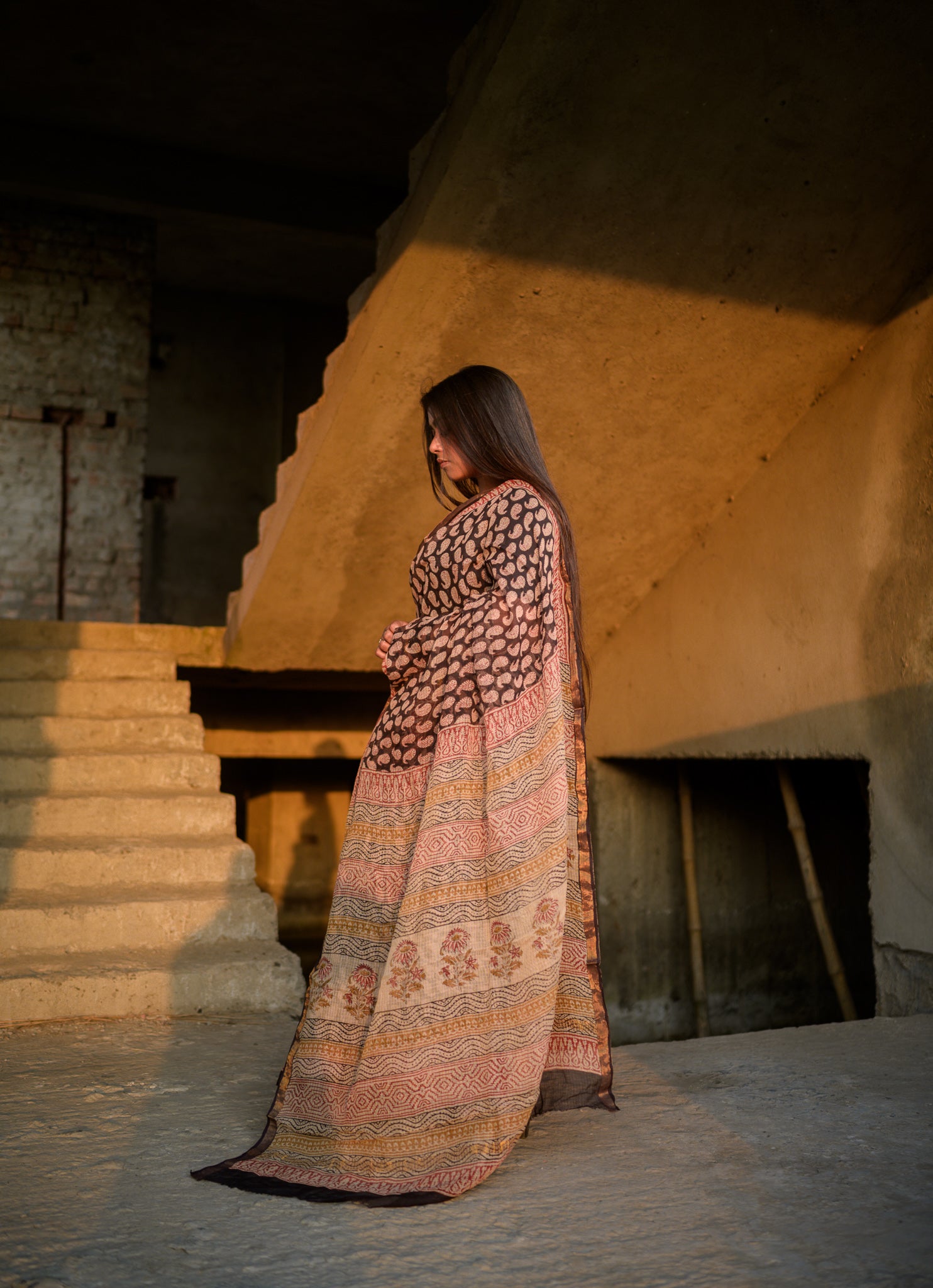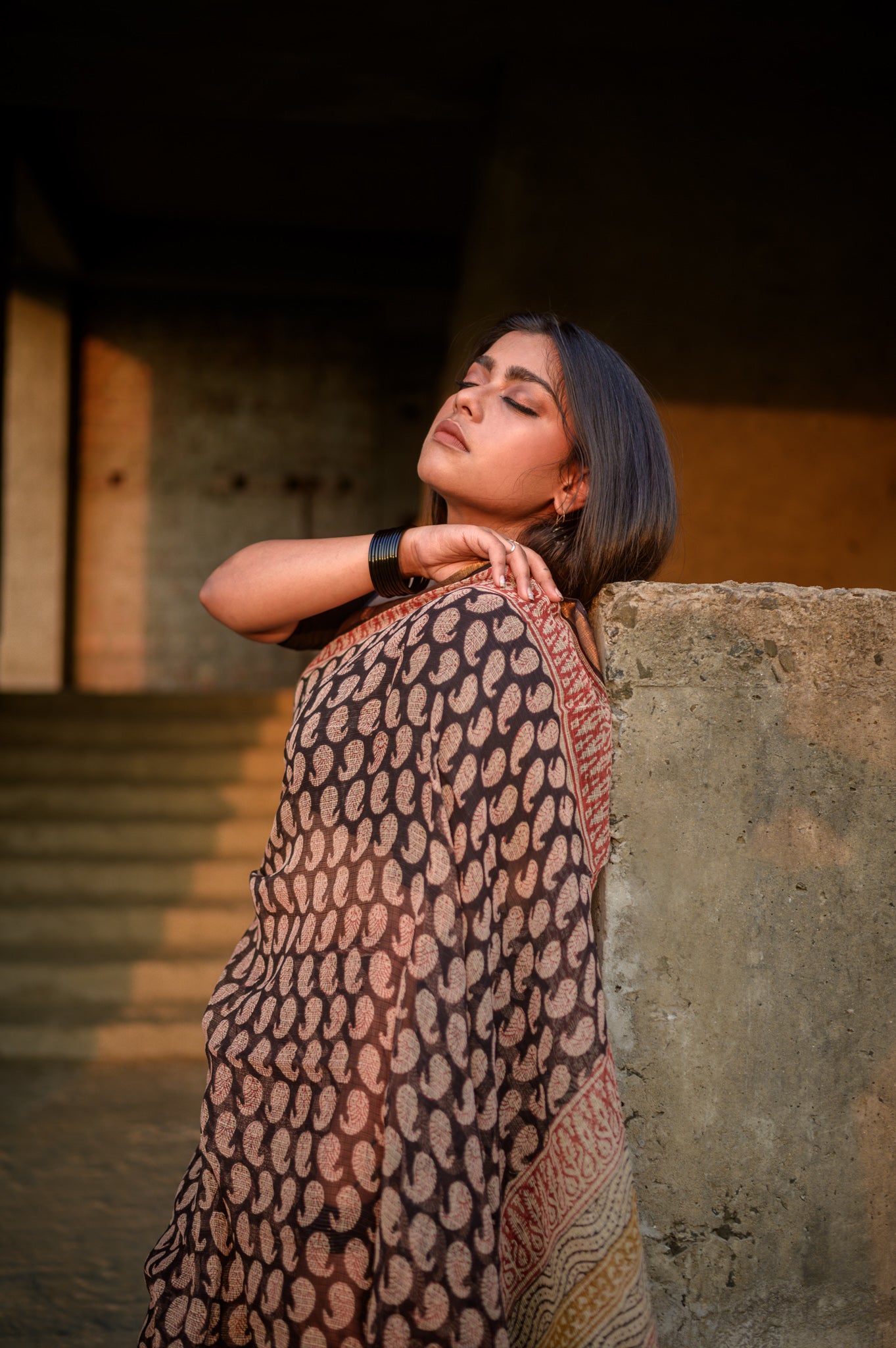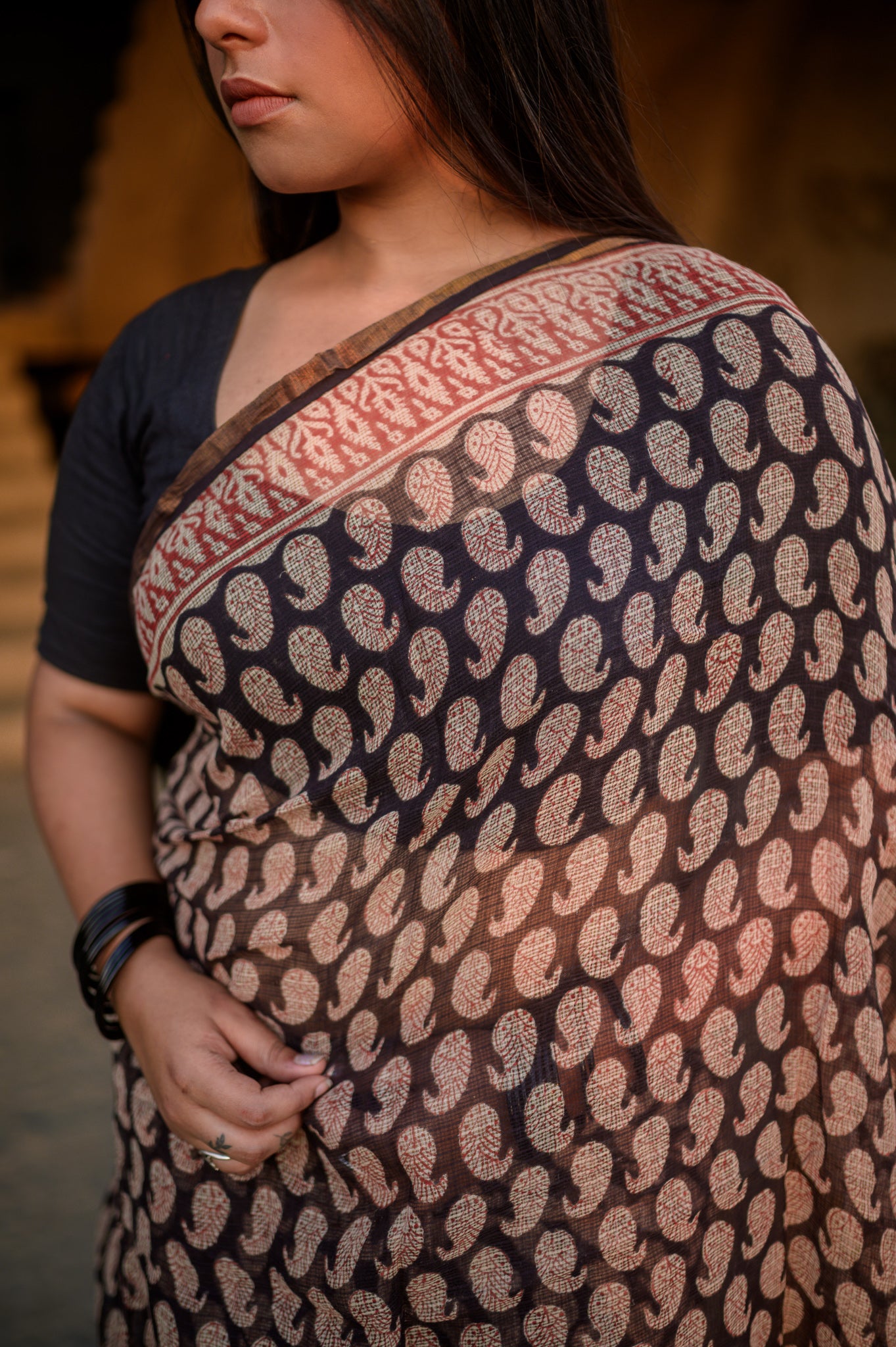 Natural dyed Bagru saree - Roheda- Kairi Kota handblockprinted saree