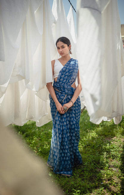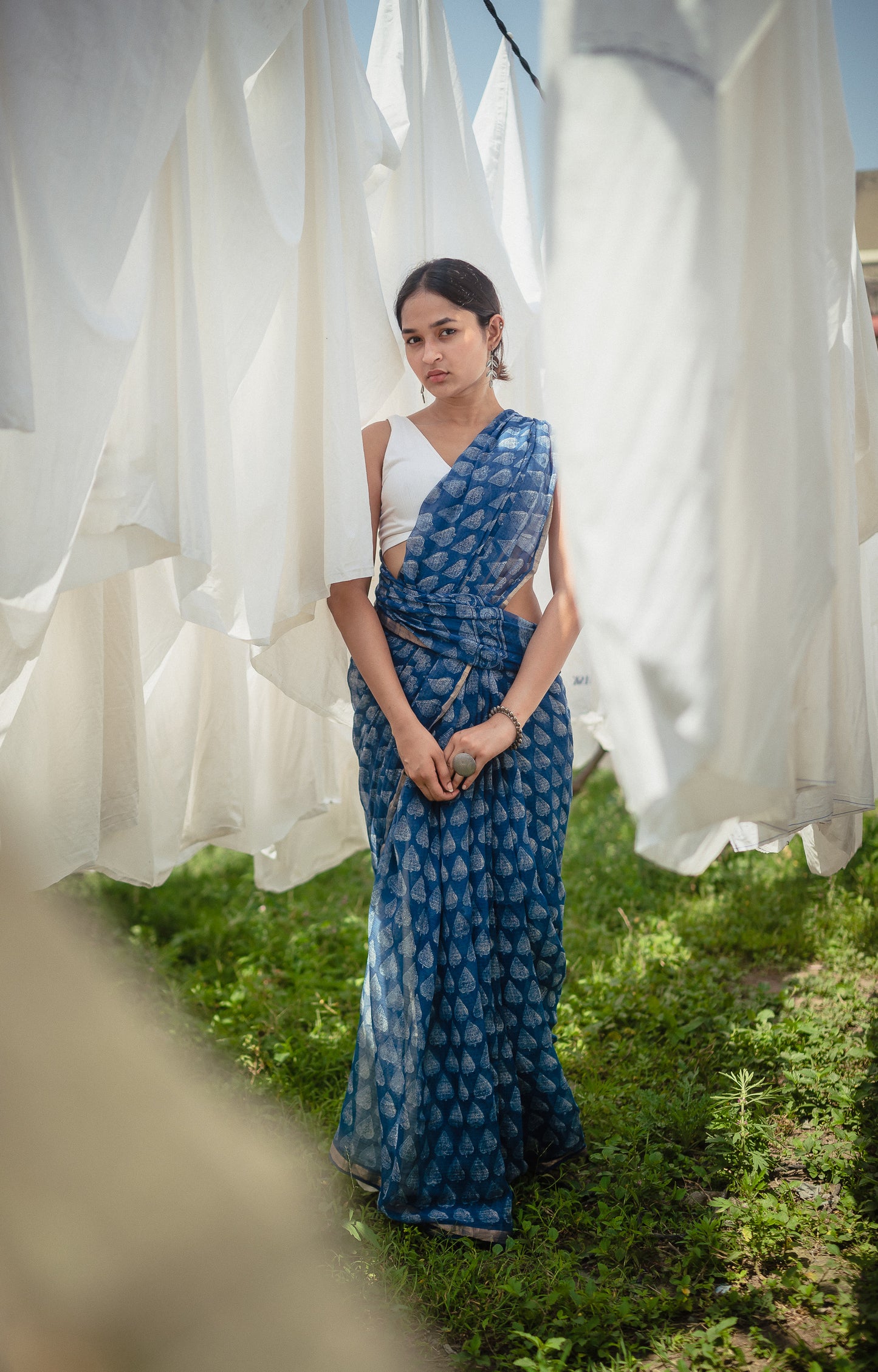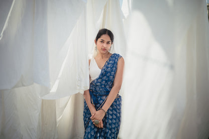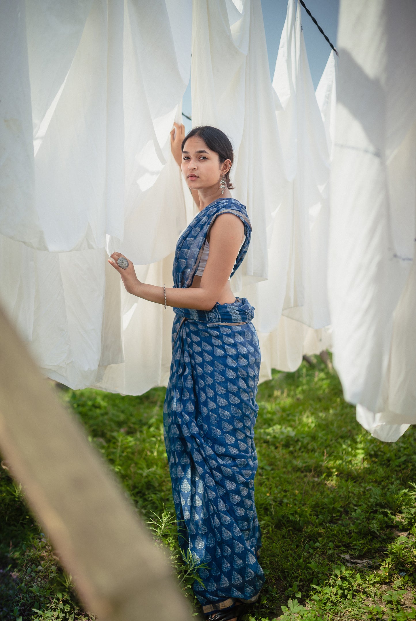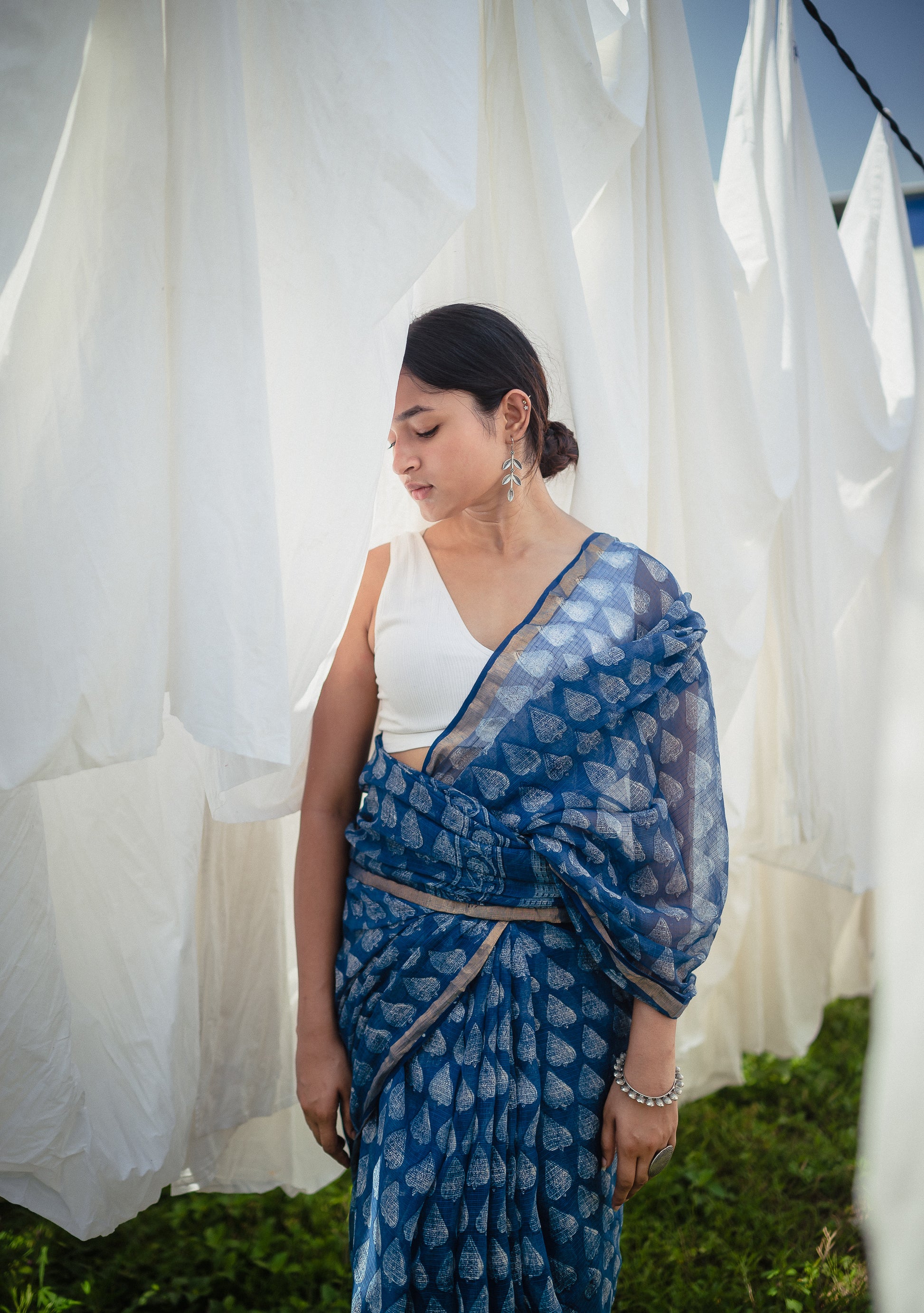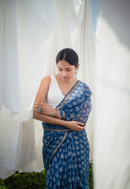 Natural dyed Dabu sarees - Malhar -Pharad Leaf Indigo