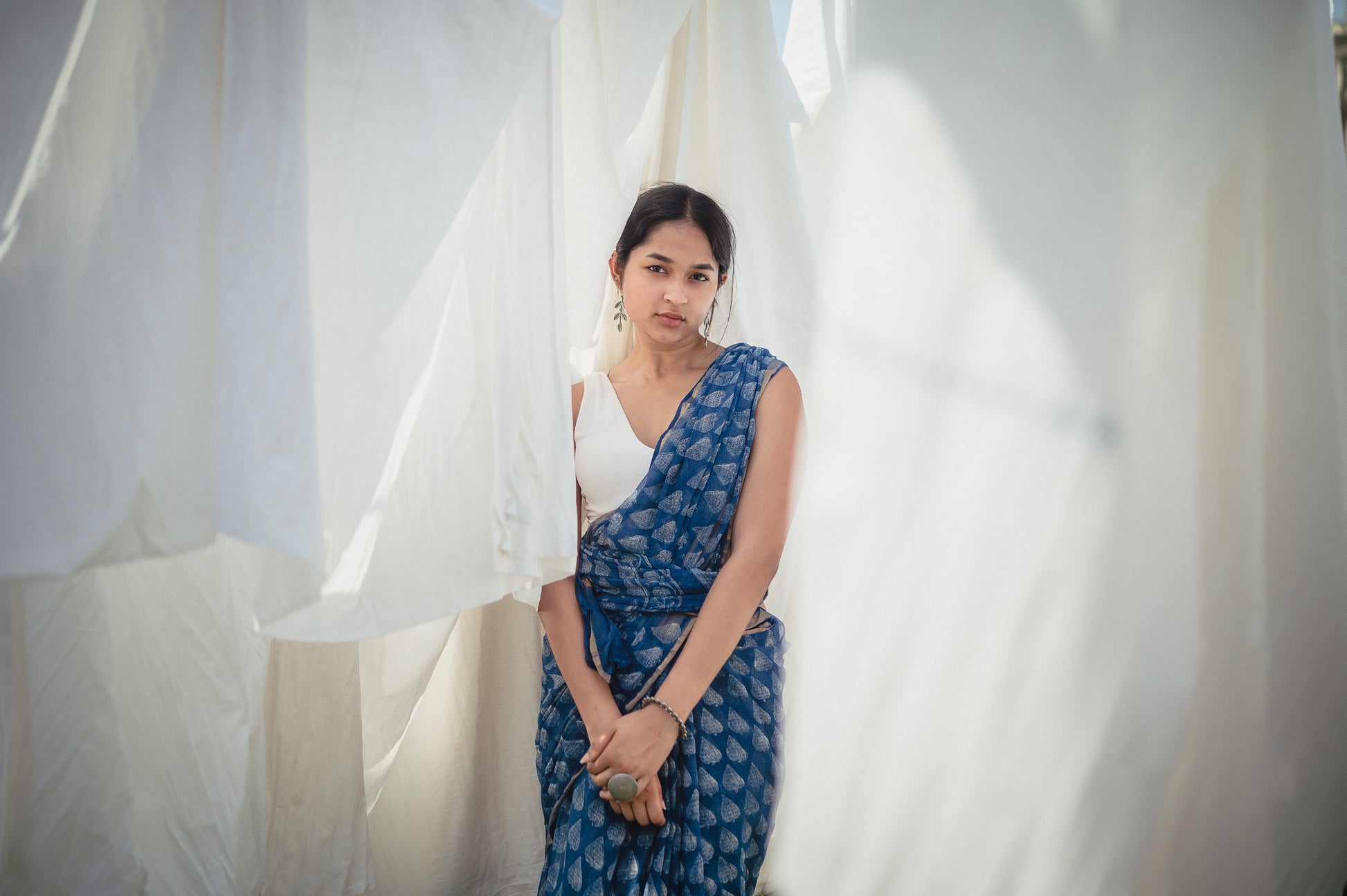 Our Kota range is truly one of a kind. Like the summer breeze on an ethereal lake, it is woven by the karigars of Kaithoon and interlaced with Dabu block printing on the borders and body to craft this chic new drape story.