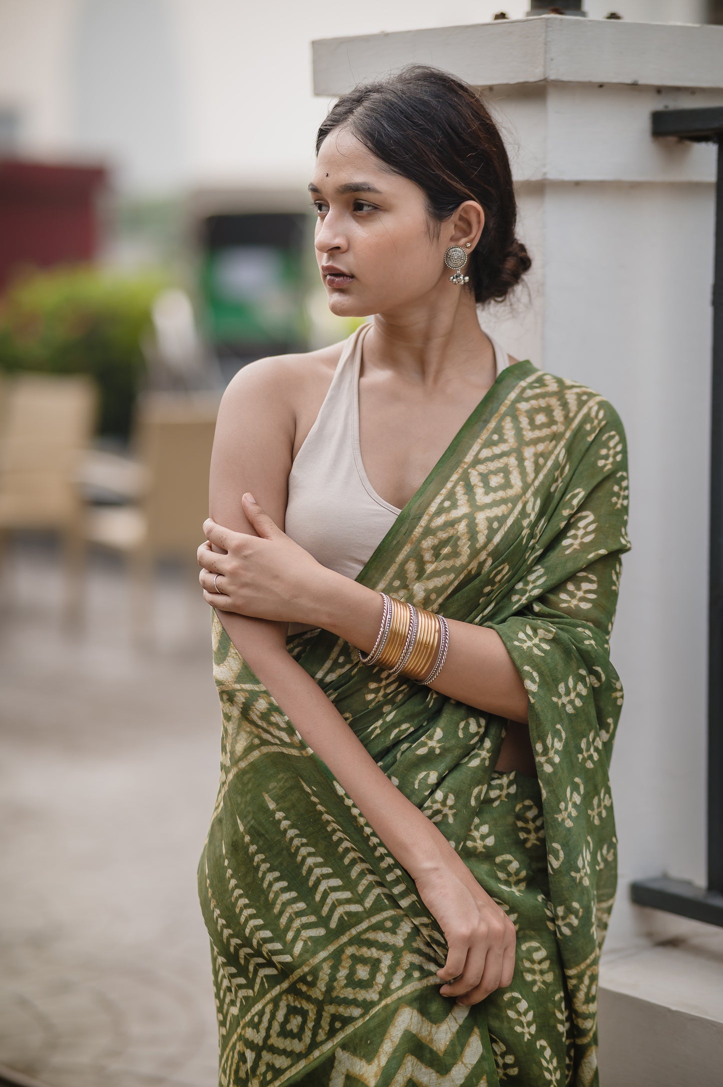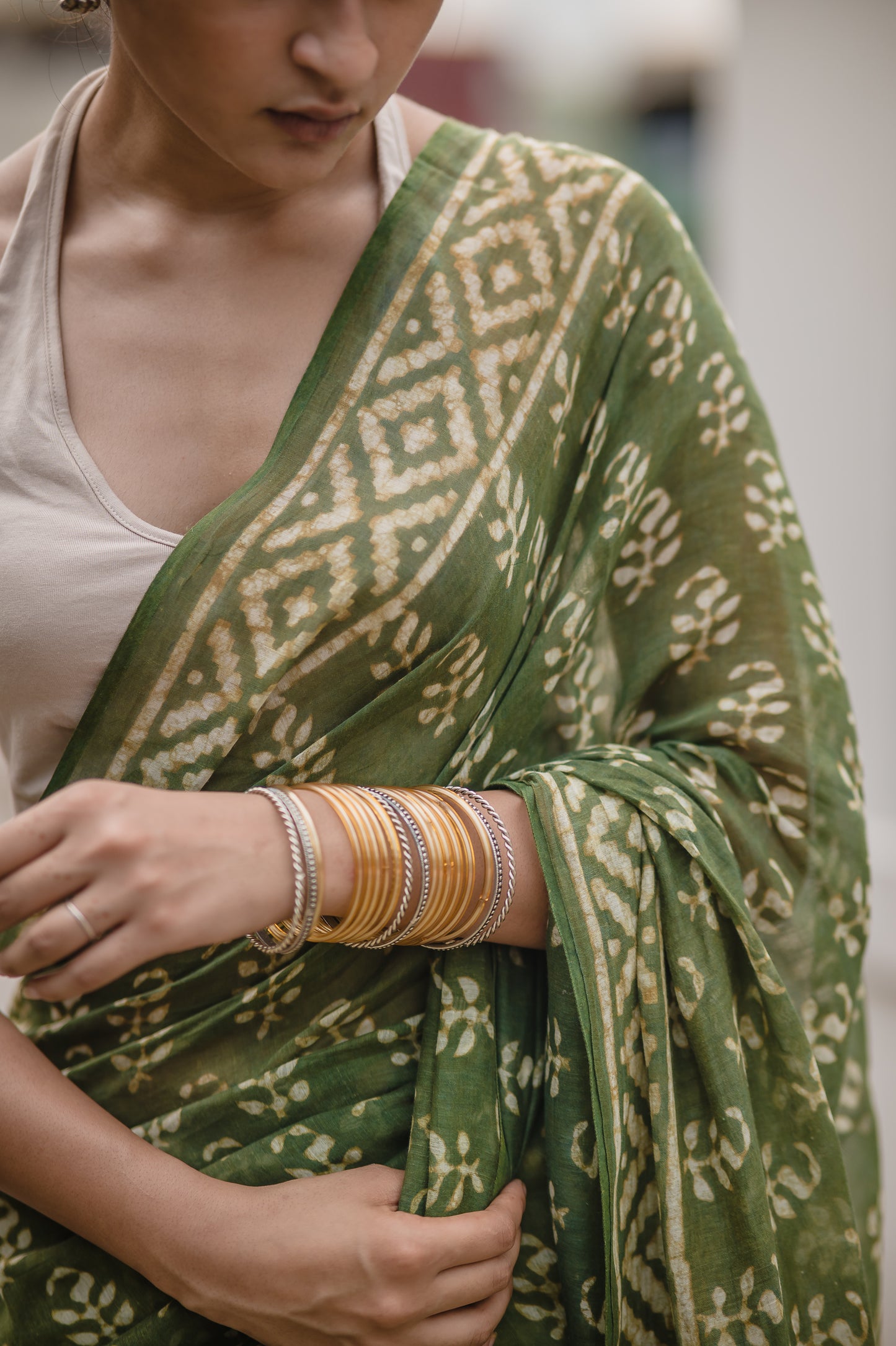 Each saree in this collection is an ode to India's ancient resist-dyeing traditions, brought alive with earthy hues and bold motifs — crafted slowly and sustainably. Using natural dyes and Azo-free colors, these sarees are as kind to your skin as they are to the earth.