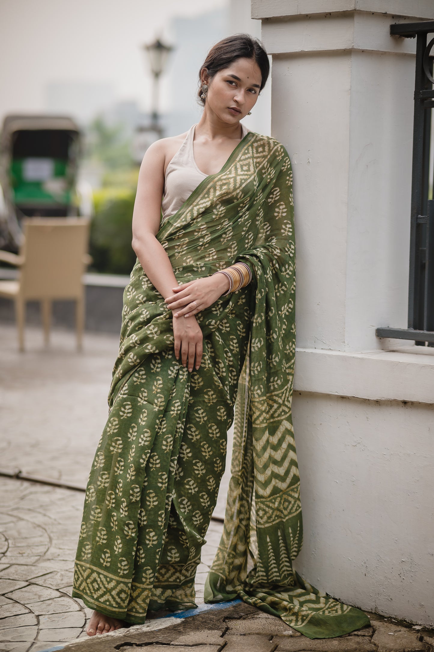 Natural dyed Dabu sarees - Malhar -Pharad Leaf Indigo