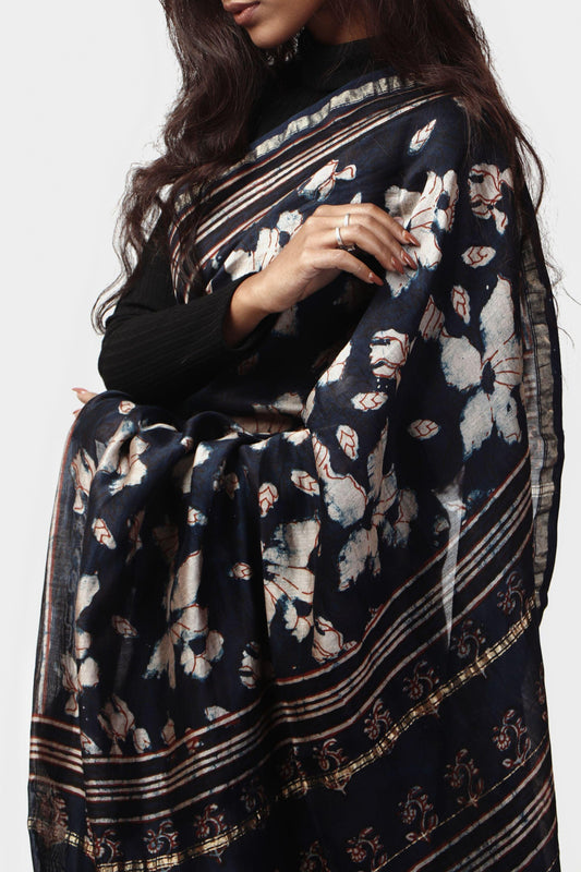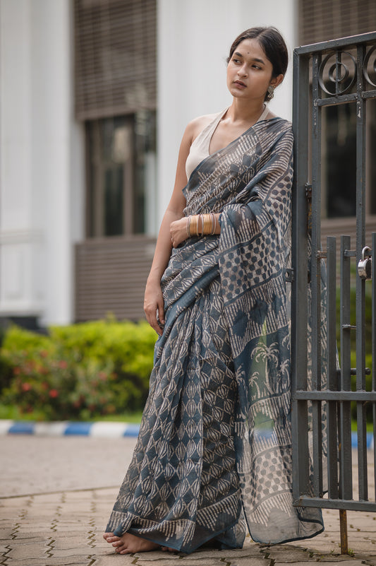 Natural dyed Dabu sarees - Malhar -Pharad Leaf Indigo