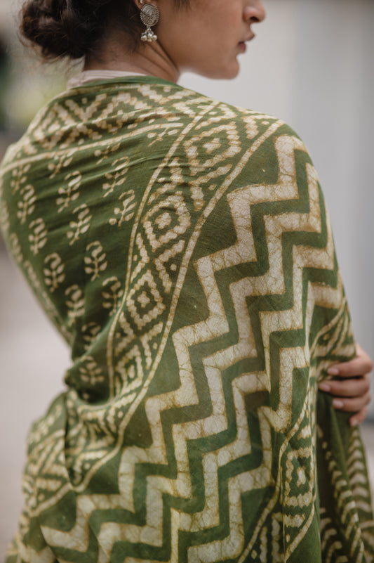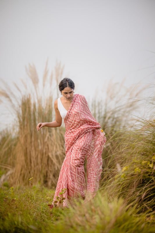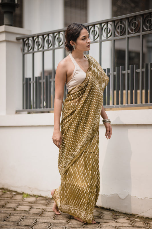 Natural dyed Bagru saree - Roheda- Chevron Syahi Begar
